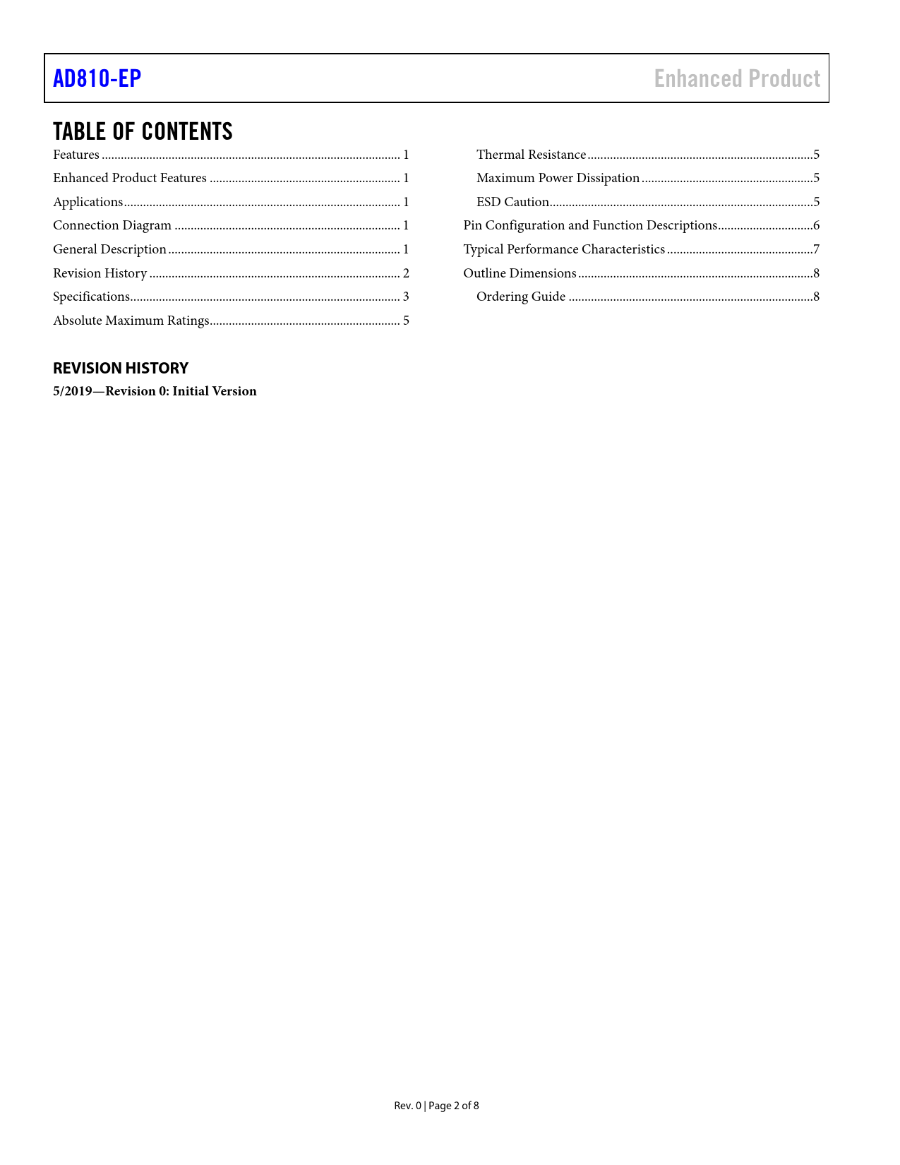 AD810-EP Enhanced Product TABLE OF CONTENTS REVISION HISTORY 5/2019—Revision 0: Initial Version