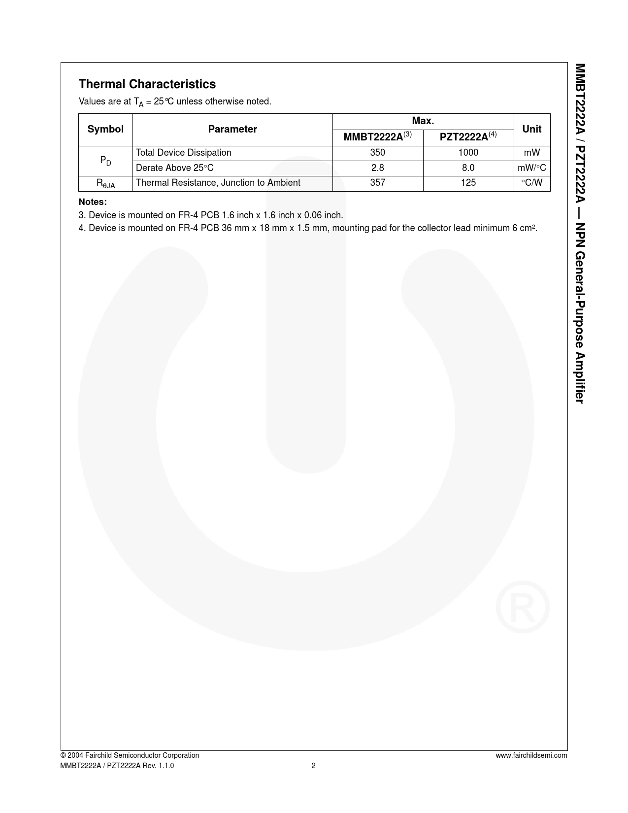 2 MMBT2222A / PZT2222A — NPN General-Purpose Amplifier Thermal Characteristics