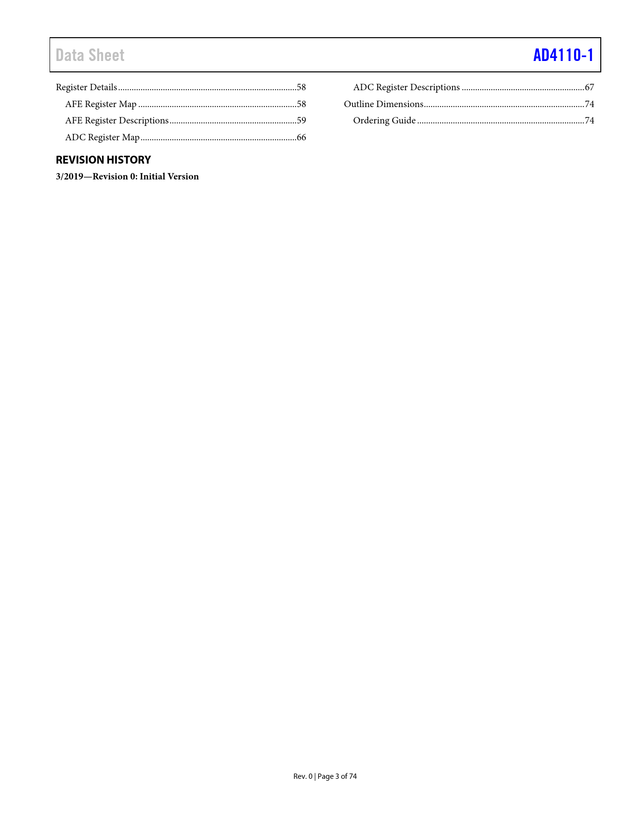 Seiten / Seite74 / 3 — Data Sheet. AD4110-1. REVISION HISTORY 3/2019—Revision 0: Initial Version