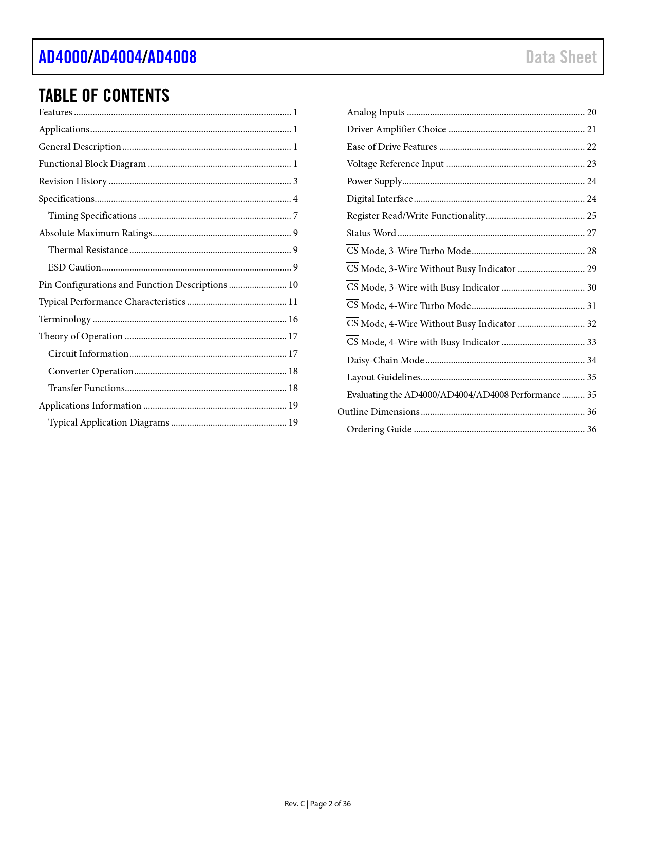 Seiten / Seite36 / 2 — AD4000/. AD4004/. AD4008. Data Sheet. TABLE OF CONTENTS