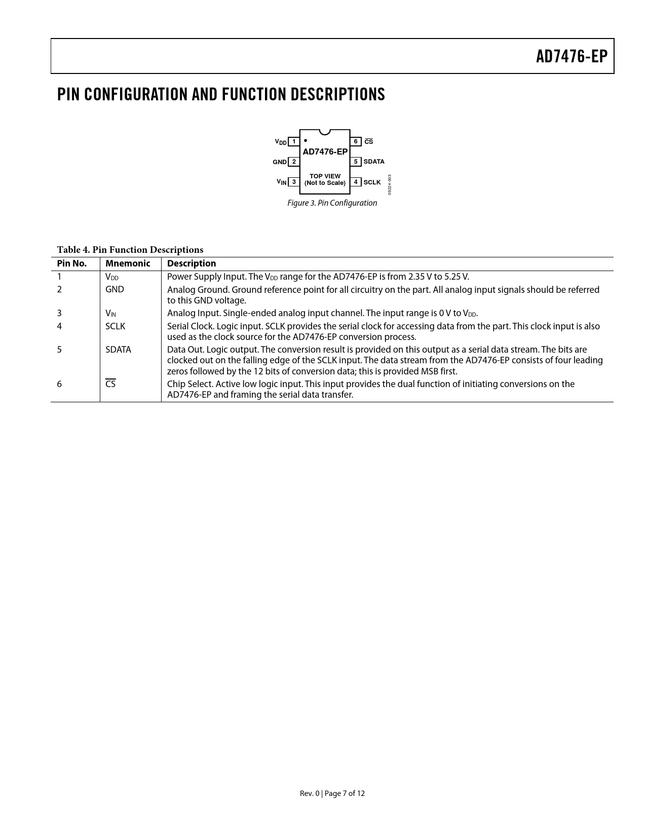 AD7476-EP PIN CONFIGURATION AND FUNCTION DESCRIPTIONS GND 2 SDATA TOP VIEW VIN 3 (Not to Scale) SCLK