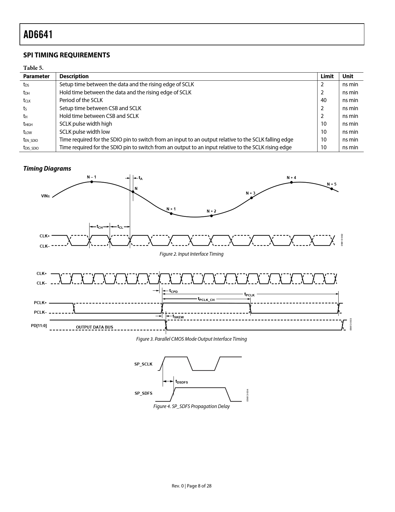 Seiten / Seite28 / 8 — AD6641. SPI TIMING REQUIREMENTS. Table 5. Parameter. Description. Limit …