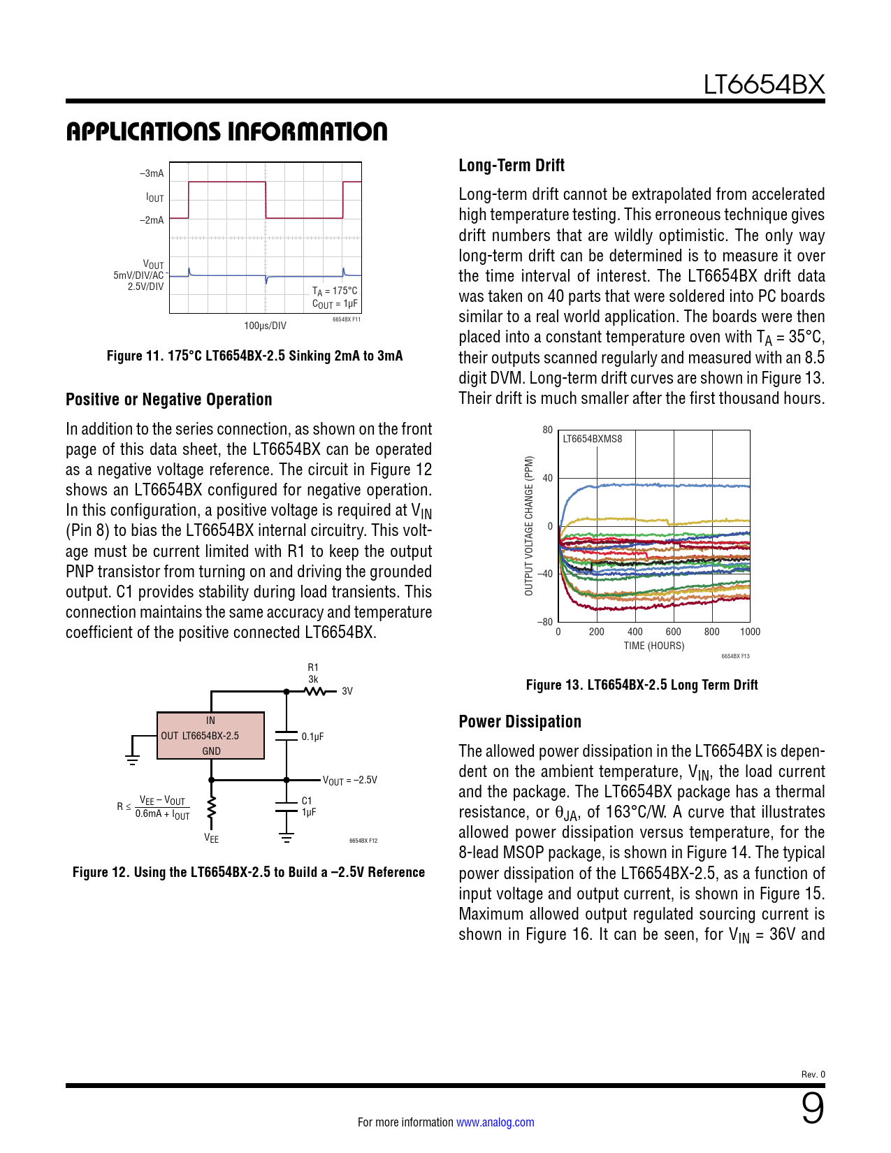 APPLICATIONS INFORMATION. Long-Term Drift. Figure 11. 175°C LT6654BX-2.5 Sinking 2mA to 3mA. Positive or Negative Operation