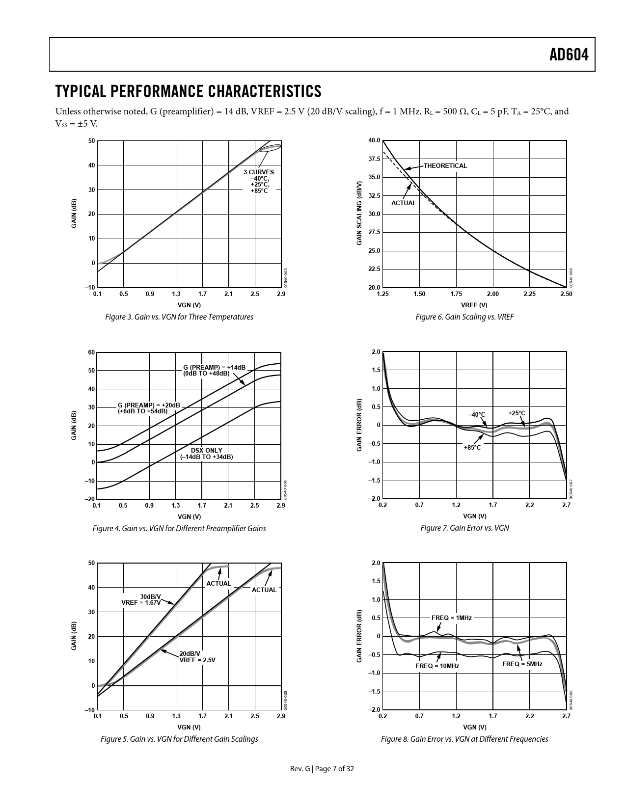 AD604. TYPICAL PERFORMANCE CHARACTERISTICS. 40.0. 37.5. THEORETICAL. 3 CURVES. –40°C,. 35.0. +25°C,. +85°C. B d. 32.5. ACTUAL. G (. 30.0. A C. S IN. 27.5