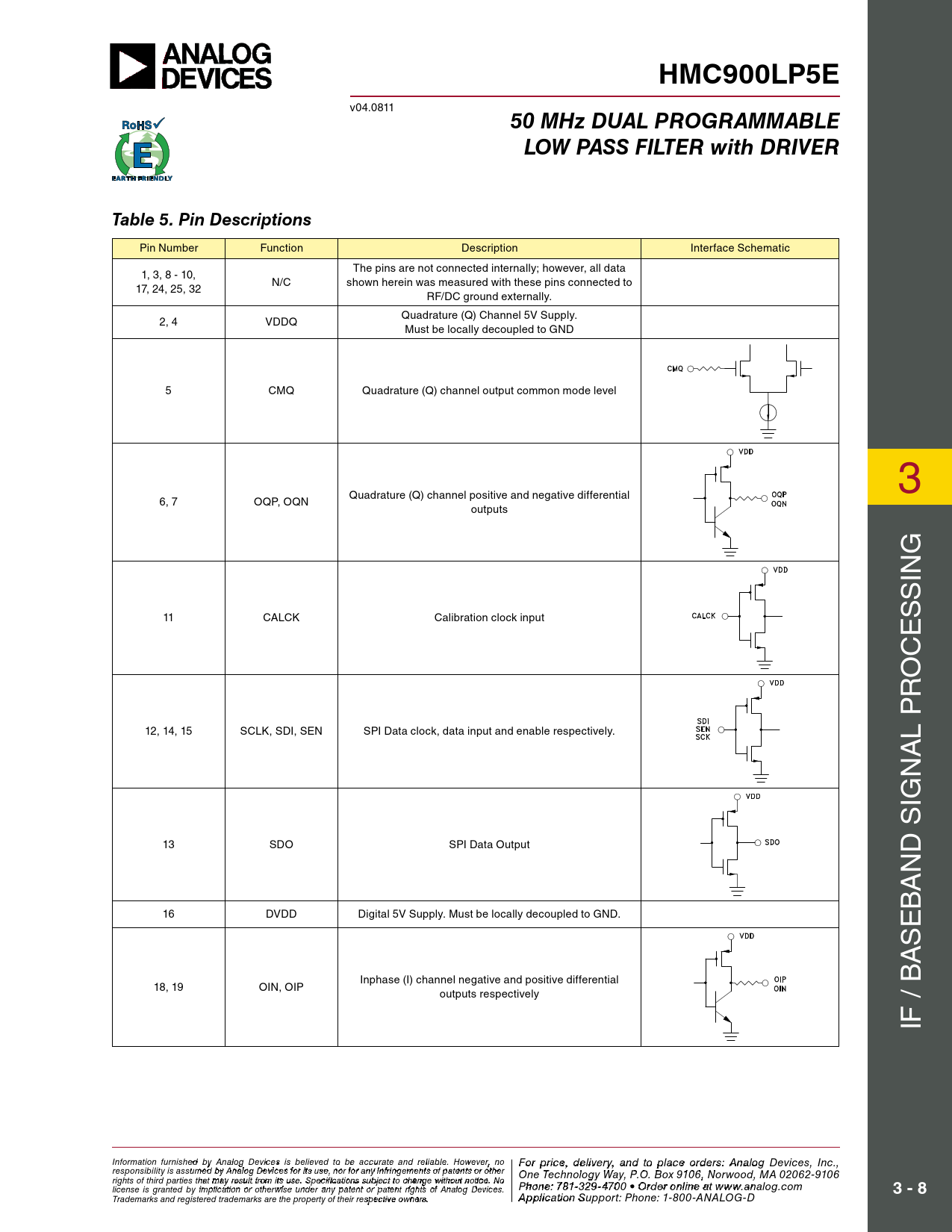 HMC900LP5E. 50 MHz DUAL PROGRAMMABLE. LOW PASS FILTER with DRIVER. Table 5. Pin Descriptions. 3 - 8