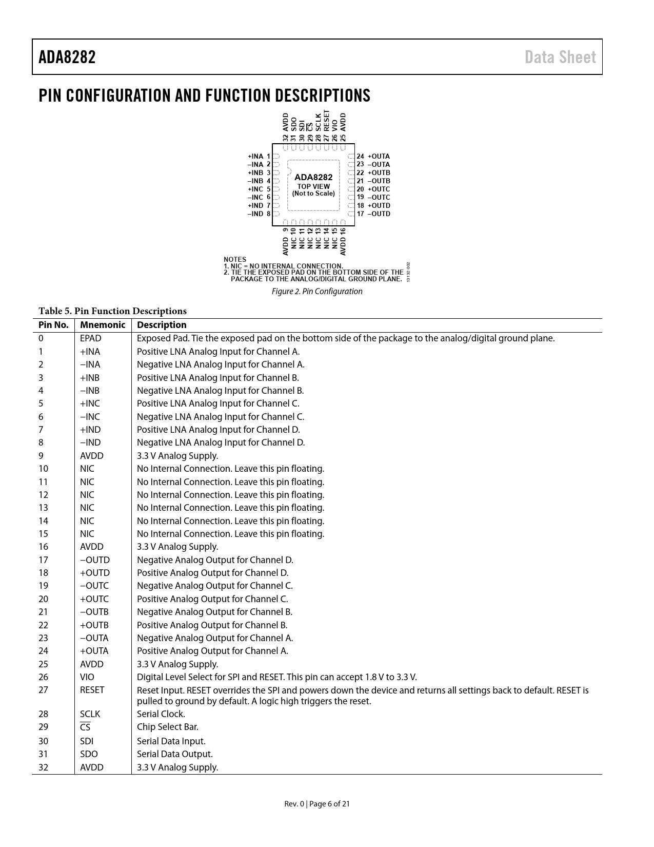 Seiten / Seite21 / 6 — ADA8282. Data Sheet. PIN CONFIGURATION AND FUNCTION DESCRIPTIONS. SET. …