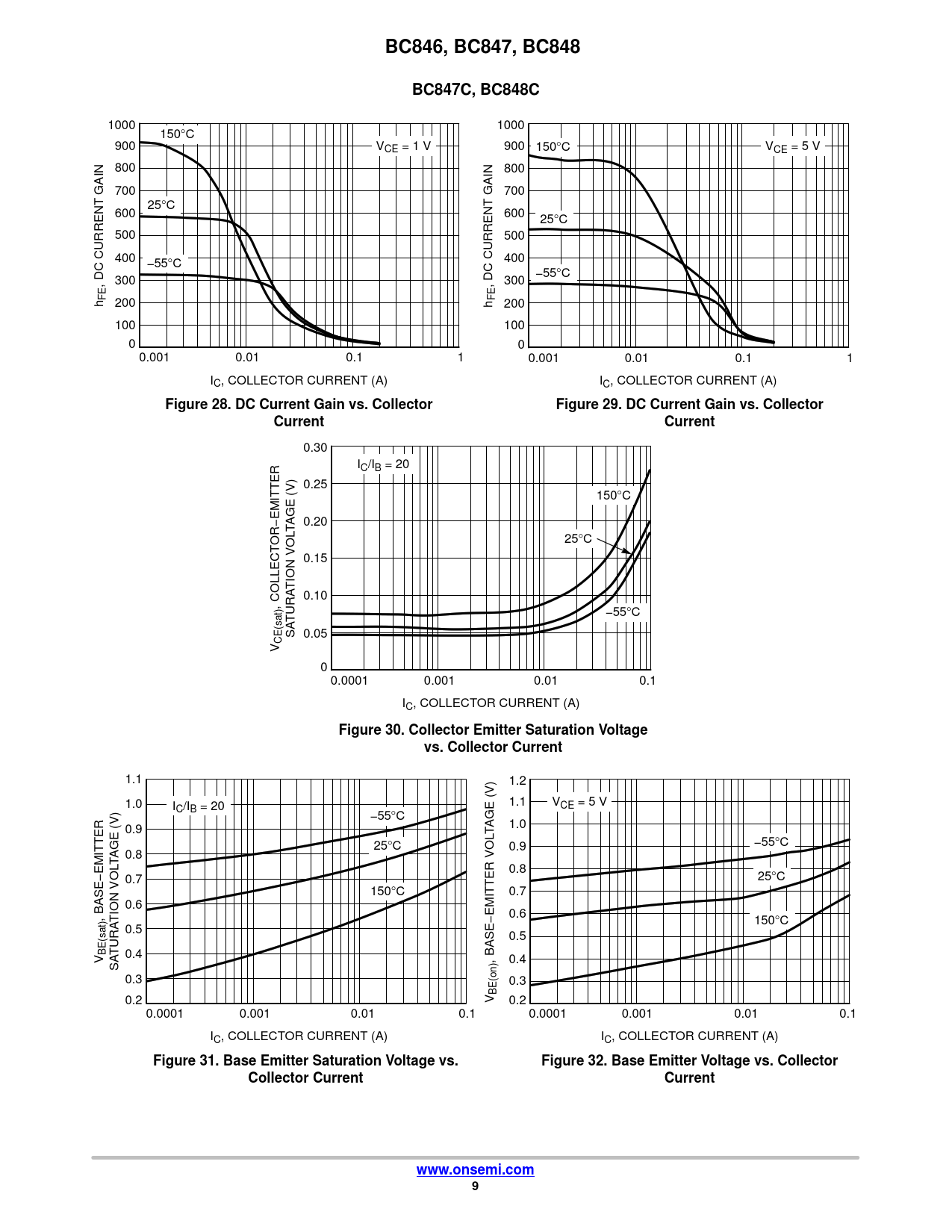 BC846, BC847, BC848. BC847C, BC848C. Figure 28. DC Current Gain vs. Collector. Figure 29. DC Current Gain vs. Collector