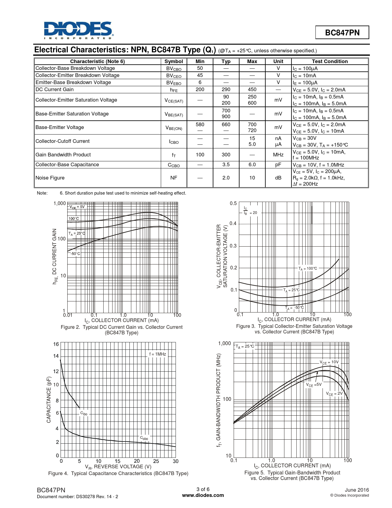 BC847PN. Electrical Characteristics:. NPN, BC847B Type (Q1). Characteristic (Note 6). Symbol. Min. Typ. Max. Unit. Test Condition