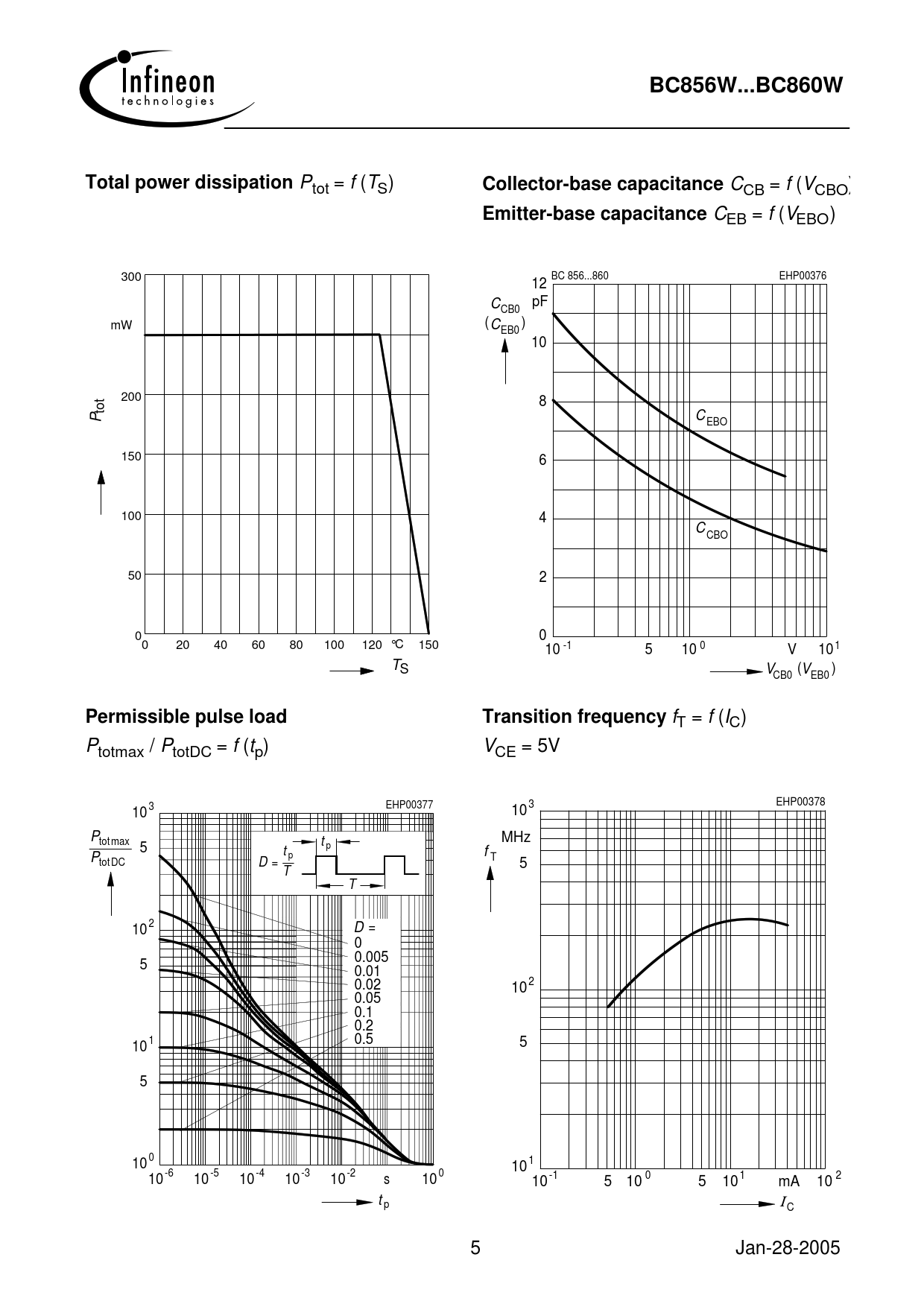 BC856W...BC860W. Total power dissipation. Collector-base capacitance. Emitter-base capacitance. Permissible pulse load