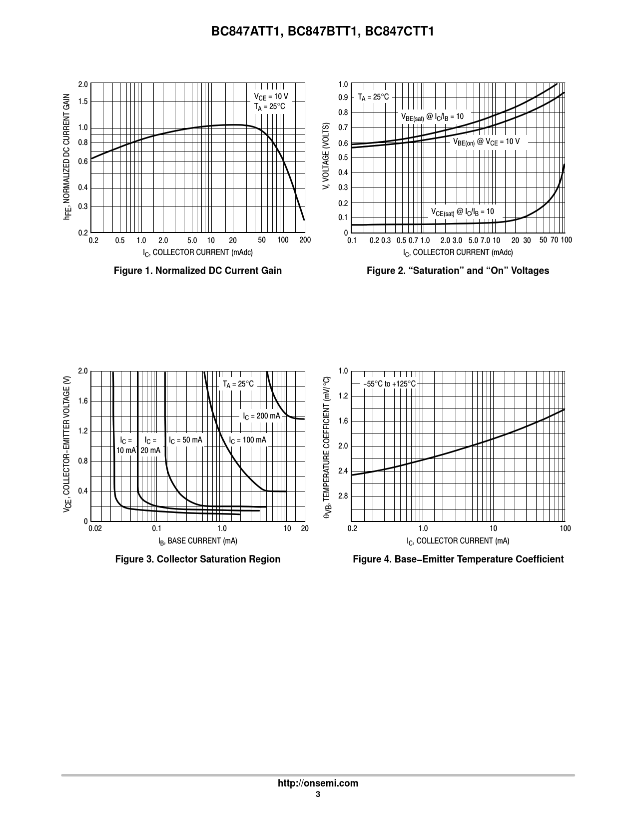 BC847ATT1, BC847BTT1, BC847CTT1. Figure 1. Normalized DC Current Gain. Figure 2. “Saturation” and “On” Voltages