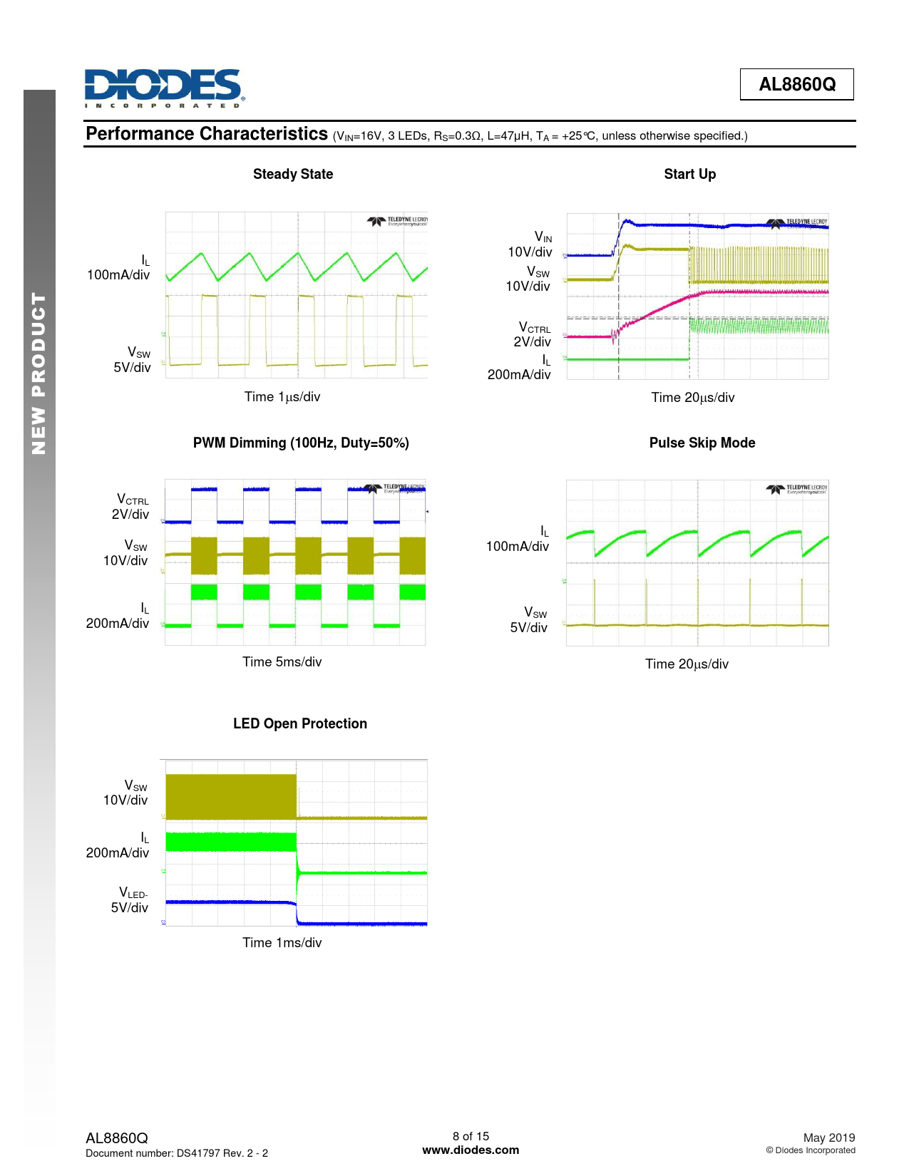 VSW 10V/div IL 200mA/div VLED- 5V/div Time 1ms/div AL8860Q 8 of 15 May 2019 Document number: DS41797 Rev. 2 - 2