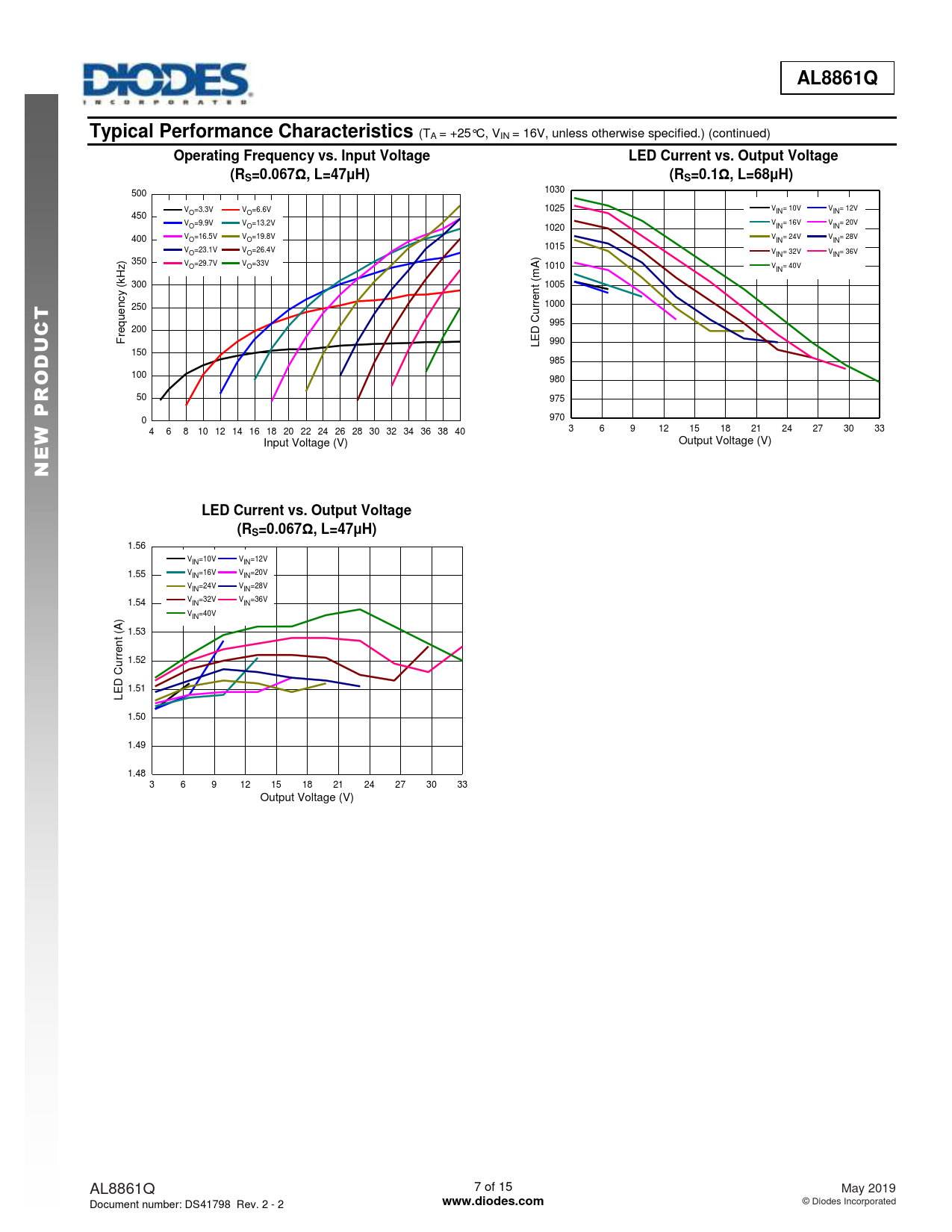 AL8861Q. Typical Performance Characteristics. Operating Frequency vs. Input Voltage LED Current vs. Output Voltage. S=0.067