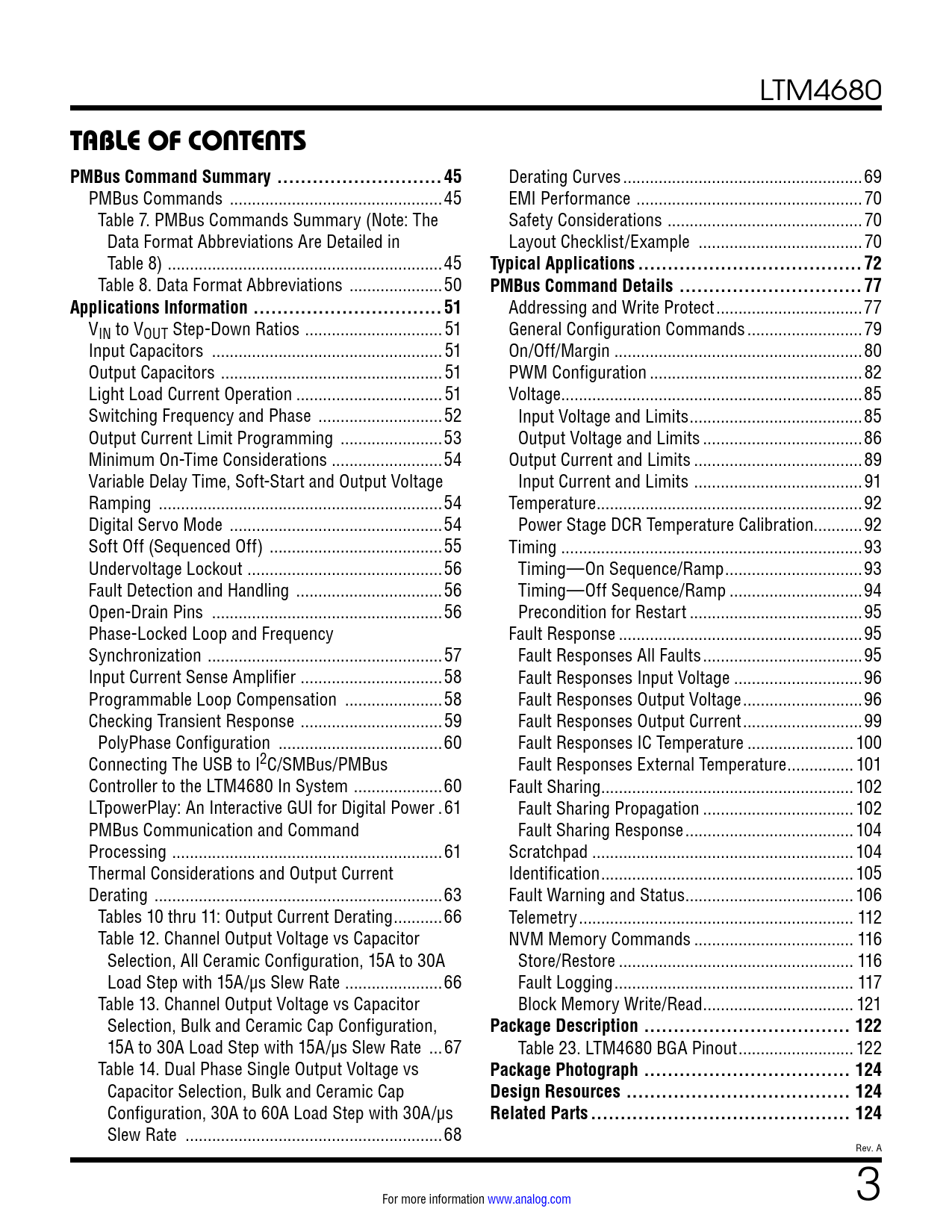 TABLE OF CONTENTS PMBus Command Summary ..45. Typical Applications ..72. PMBus Command Details ...77
