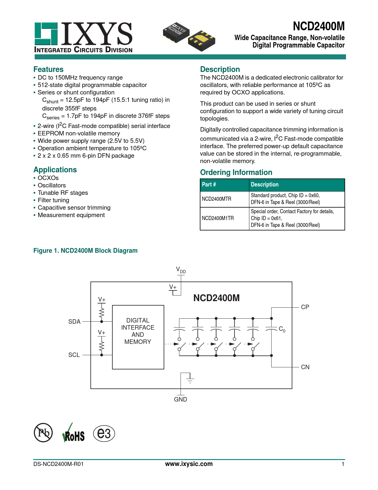 NCD2400M. Wide Capacitance Range, Non-volatile. Digital Programmable Capacitor. Features. Description. Applications