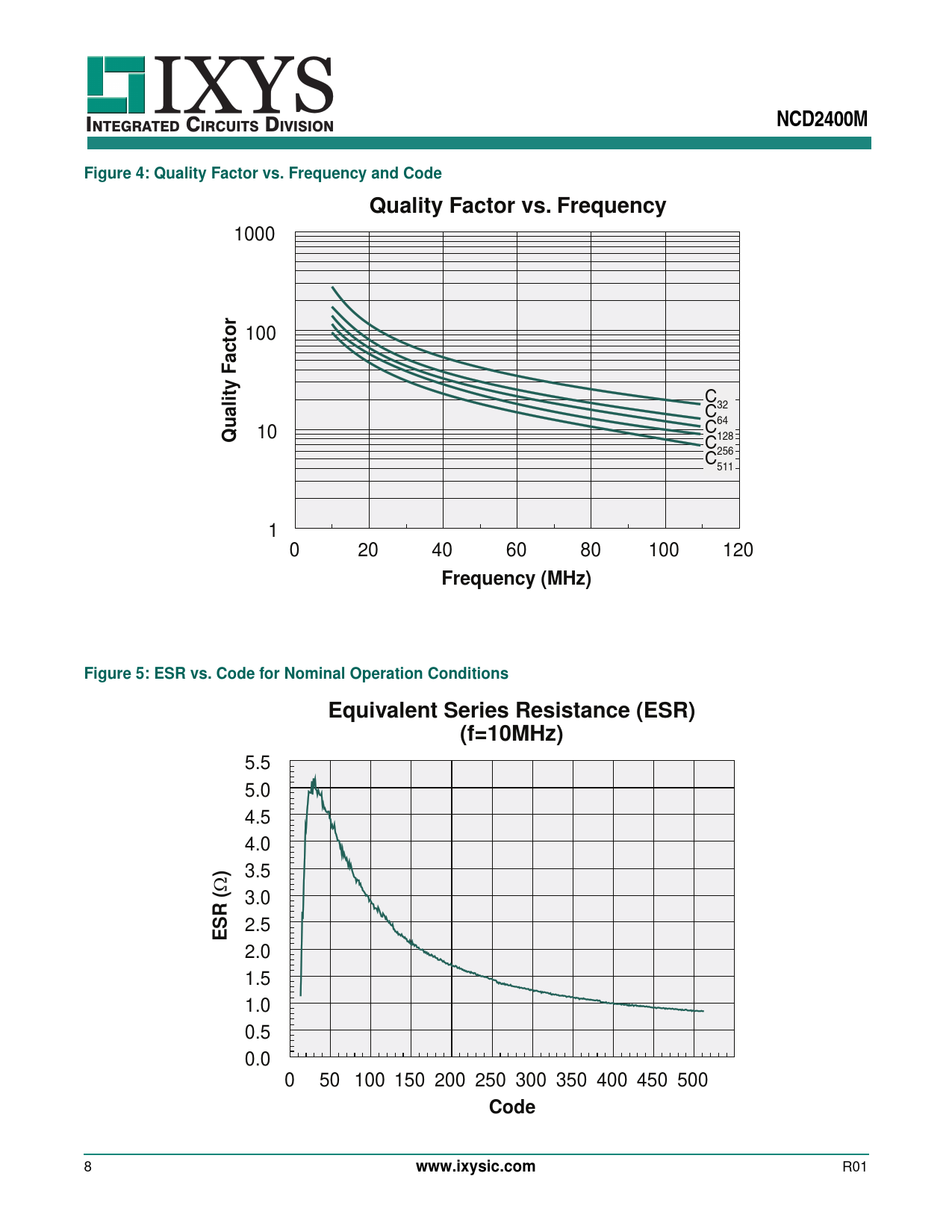 Frequency (MHz) Figure 5: ESR vs. Code for Nominal Operation Conditions Equivalent Series Resistance (ESR) (f=10MHz)