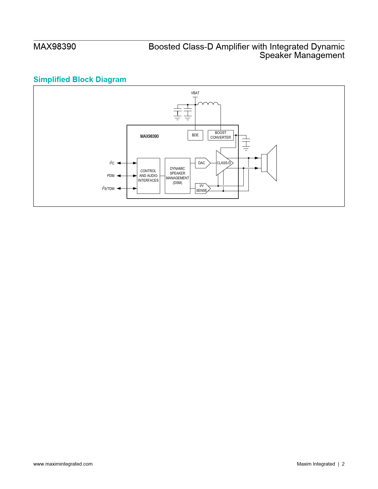MAX98390 Boosted Class-D Amplifier with Integrated Dynamic Speaker Management