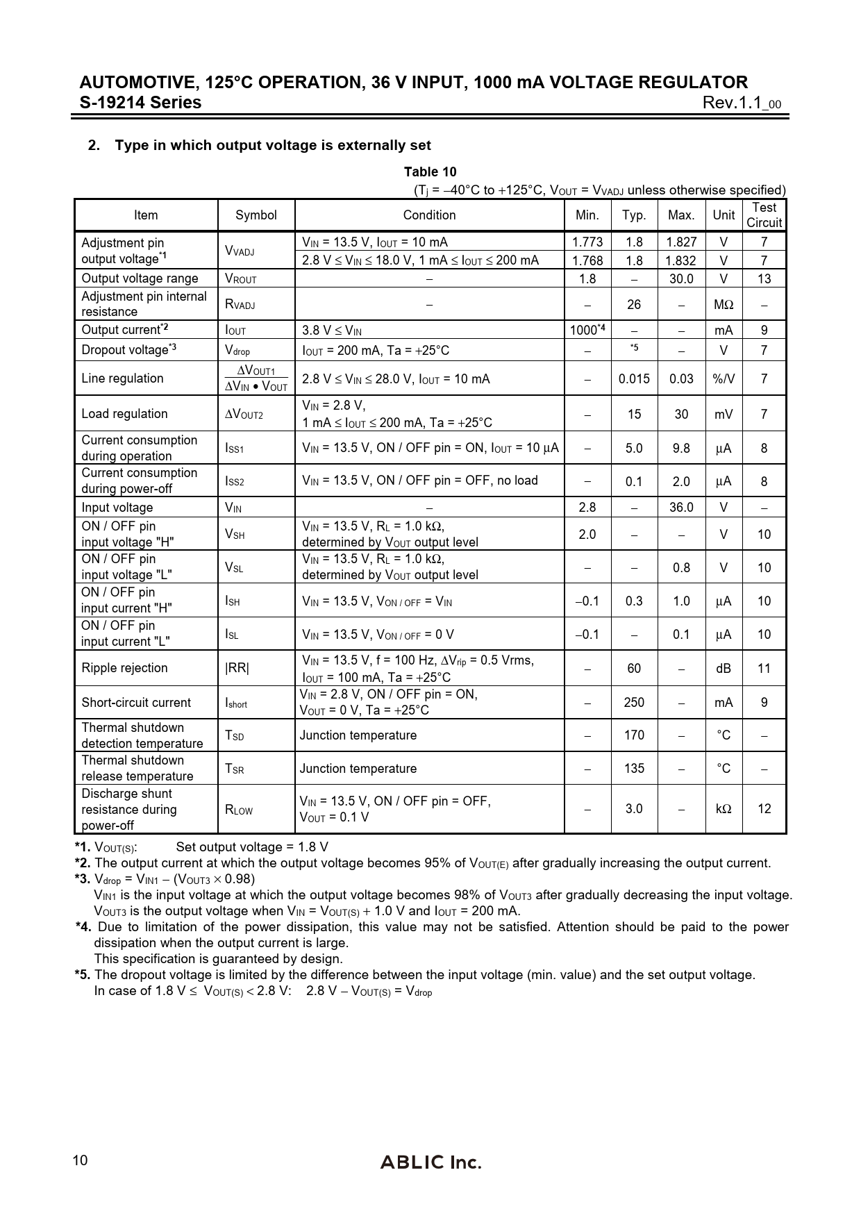 2. Type in which output voltage is externally set Table 10