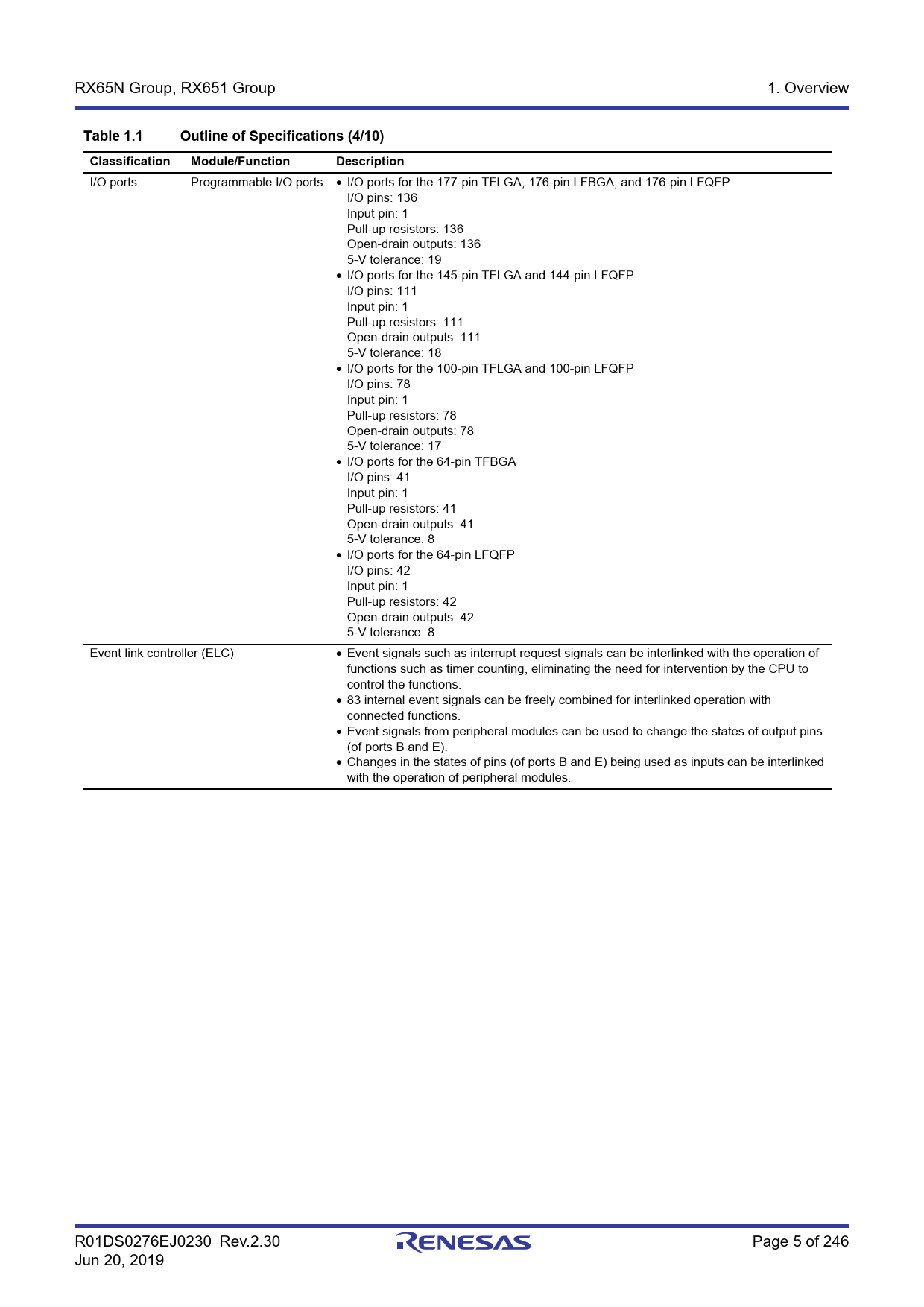 Datasheet RX65N, RX651 Groups (Renesas) - 5