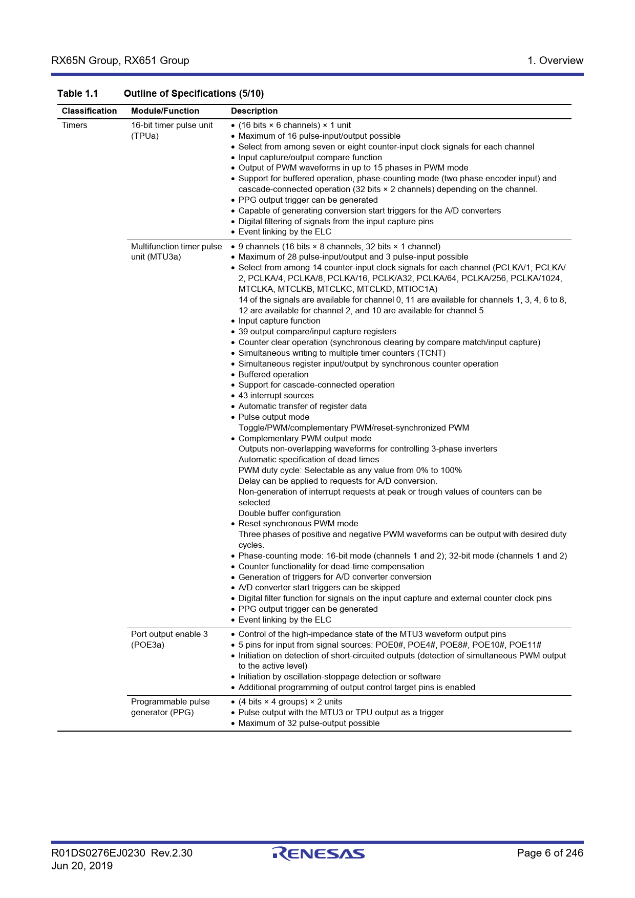Datasheet RX65N, RX651 Groups (Renesas) - 6