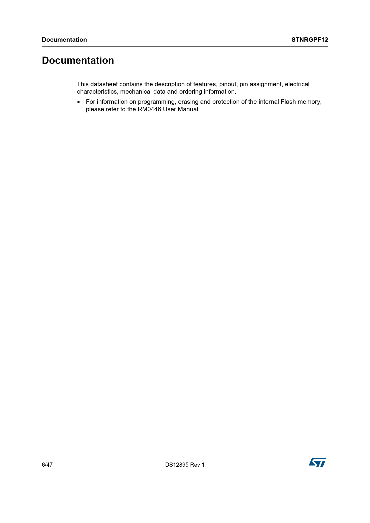 Seiten / Seite47 / 6 — Documentation. STNRGPF12