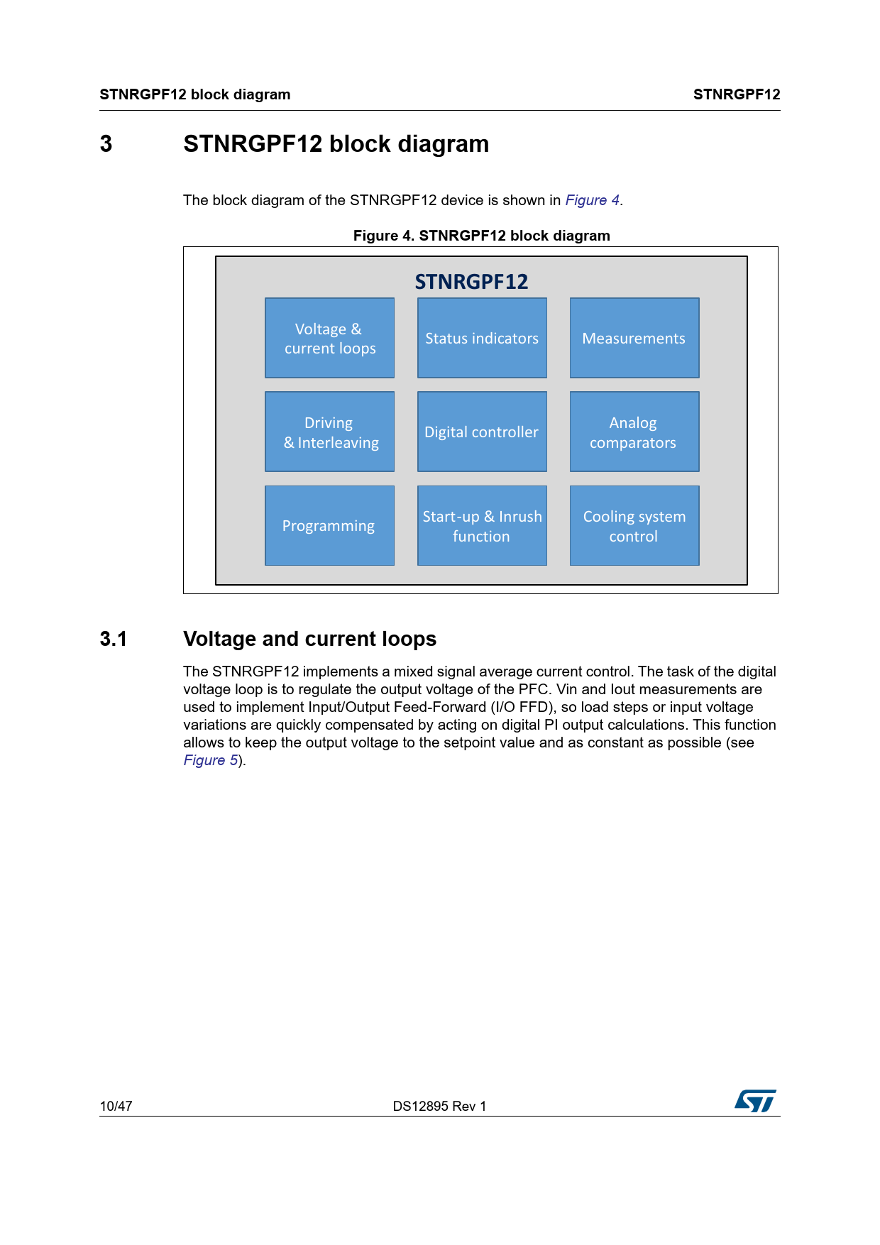 STNRGPF12 block diagram STNRGPF12 Figure 4 STNRGPF12 block diagram ^dEZ'W&ϭϮ 3.1 Voltage and current loops