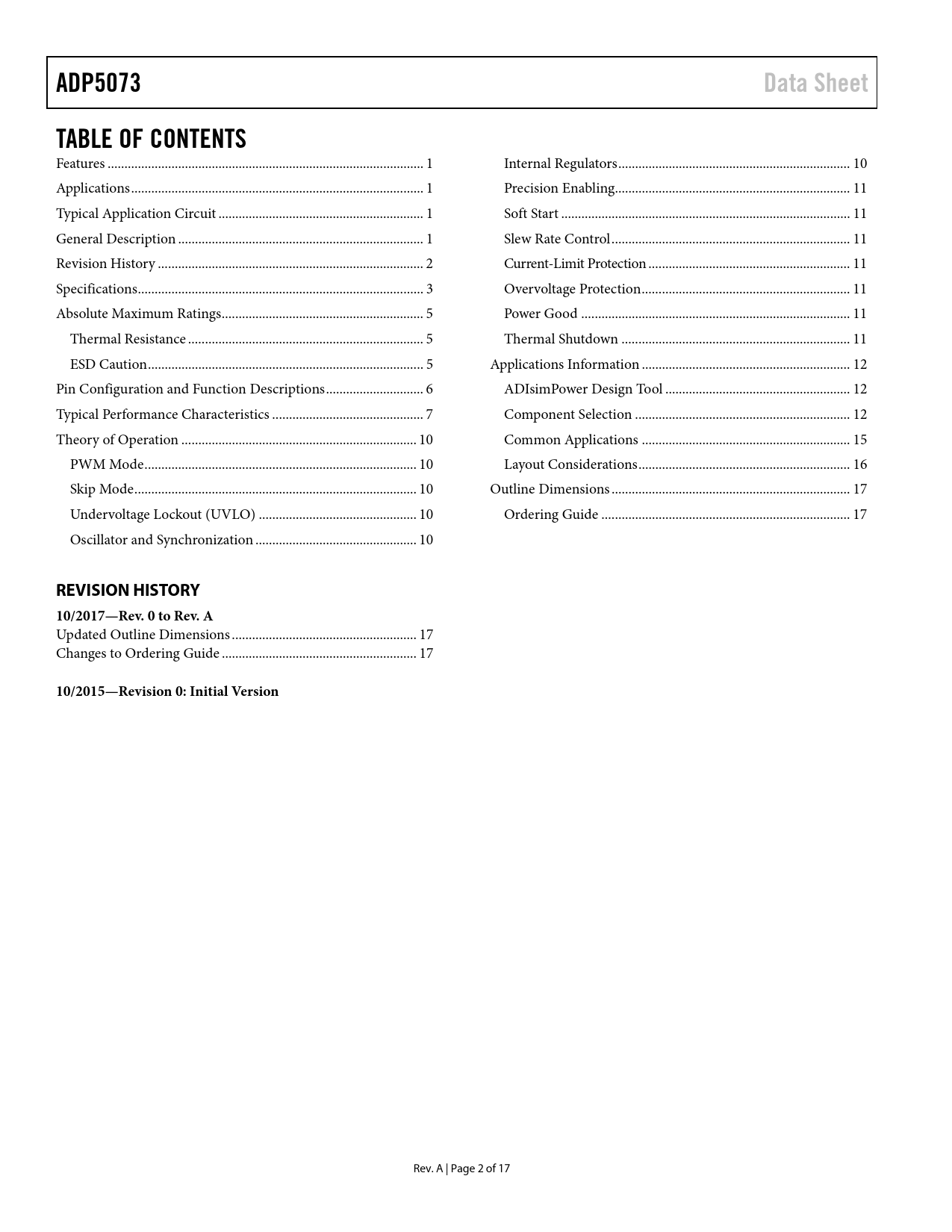 Seiten / Seite17 / 2 — ADP5073. Data Sheet. TABLE OF CONTENTS. REVISION HISTORY 10/2017—Rev. 0 …