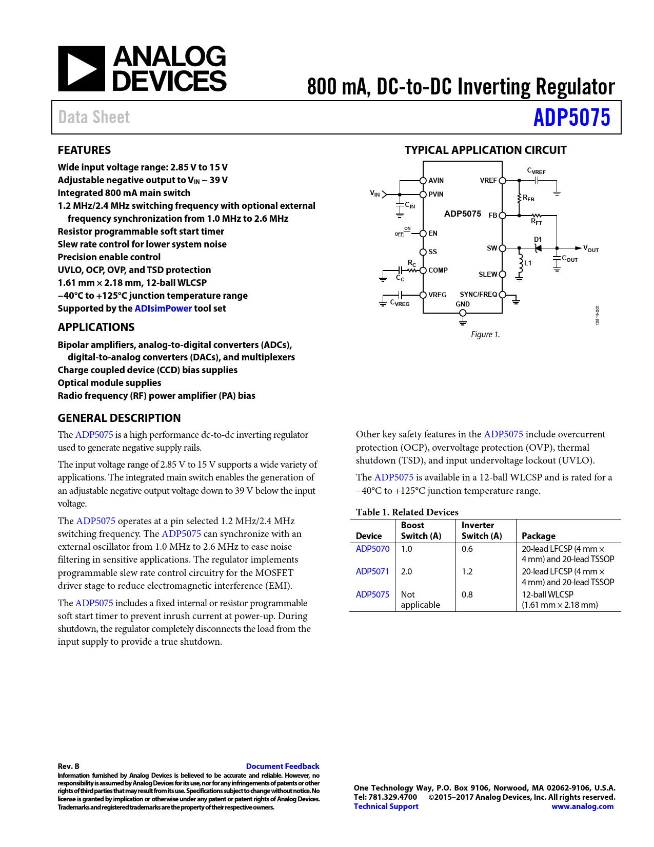 | Seiten / Seite | 19 / 1 — 800 mA, DC-to-DC Inverting Regulator. Data Sheet. ADP5075. FEATURES. … |