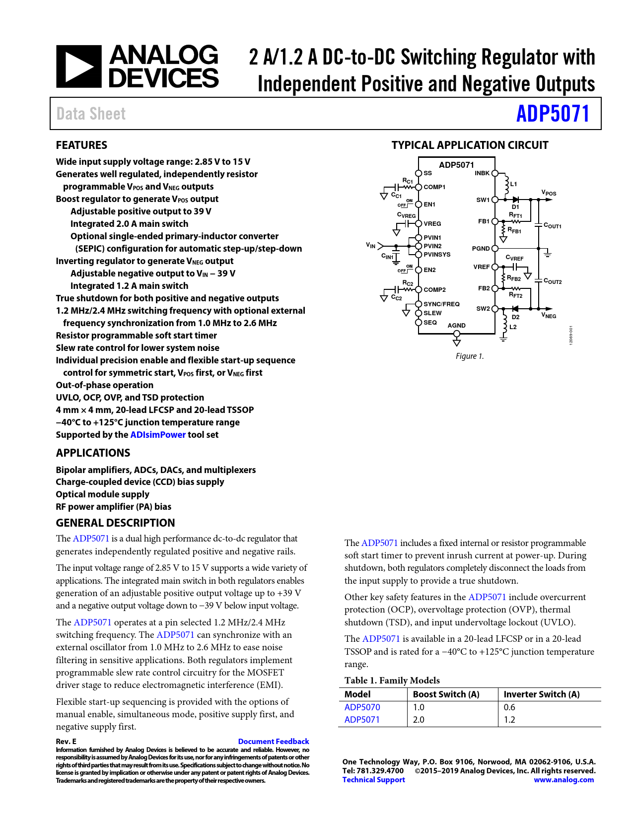 2 A/1.2 A DC-to-DC Switching Regulator with. Independent Positive and Negative Outputs. Data Sheet. ADP5071. FEATURES