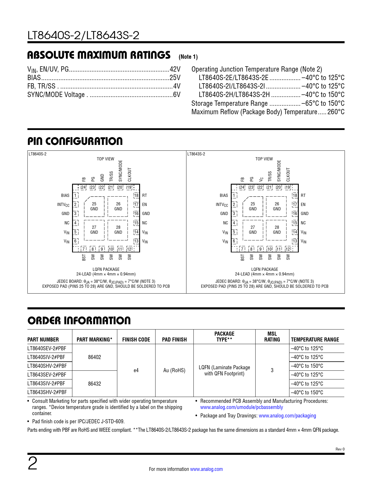 Datasheet LT8640S-2, LT8643S-2 (Analog Devices) - 2