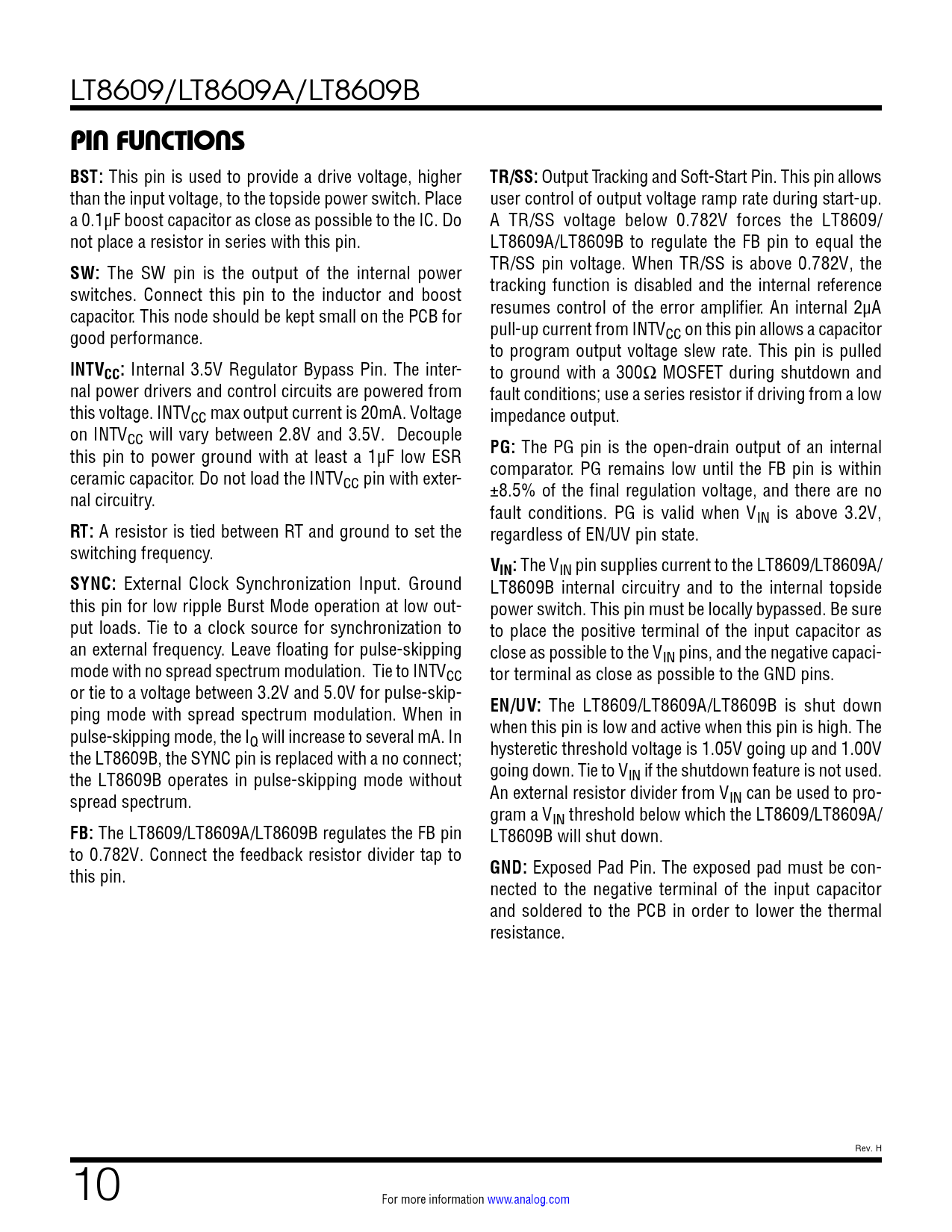 LT8609/LT8609A/LT8609B PIN FUNCTIONS