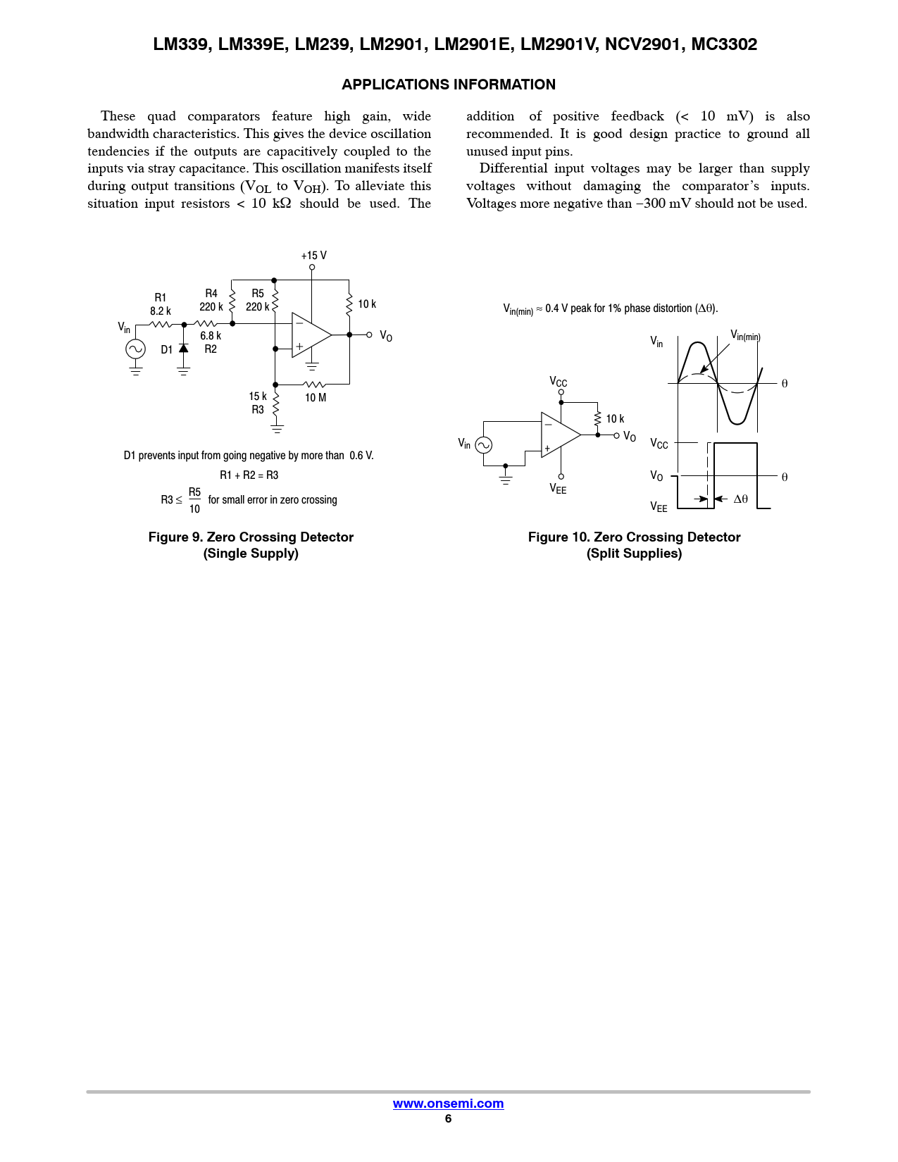 LM339, LM339E, LM239, LM2901, LM2901E, LM2901V, NCV2901, MC3302. APPLICATIONS INFORMATION. Figure 9. Zero Crossing Detector