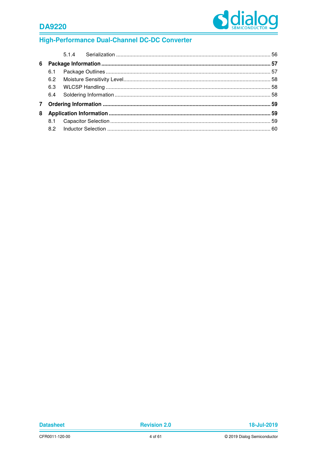 DA9220. High-Performance Dual-Channel DC-DC Converter. 6 Package Information ... 57. 7 Ordering Information .. 59