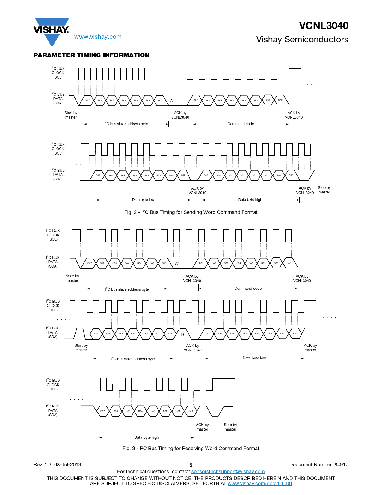 VCNL3040. PARAMETER TIMING INFORMATION