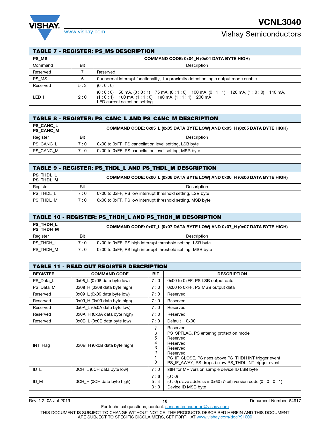 VCNL3040. TABLE 7 - REGISTER: PS_MS DESCRIPTION PS_MS. COMMAND CODE: 0x04_H (0x04 DATA BYTE HIGH)