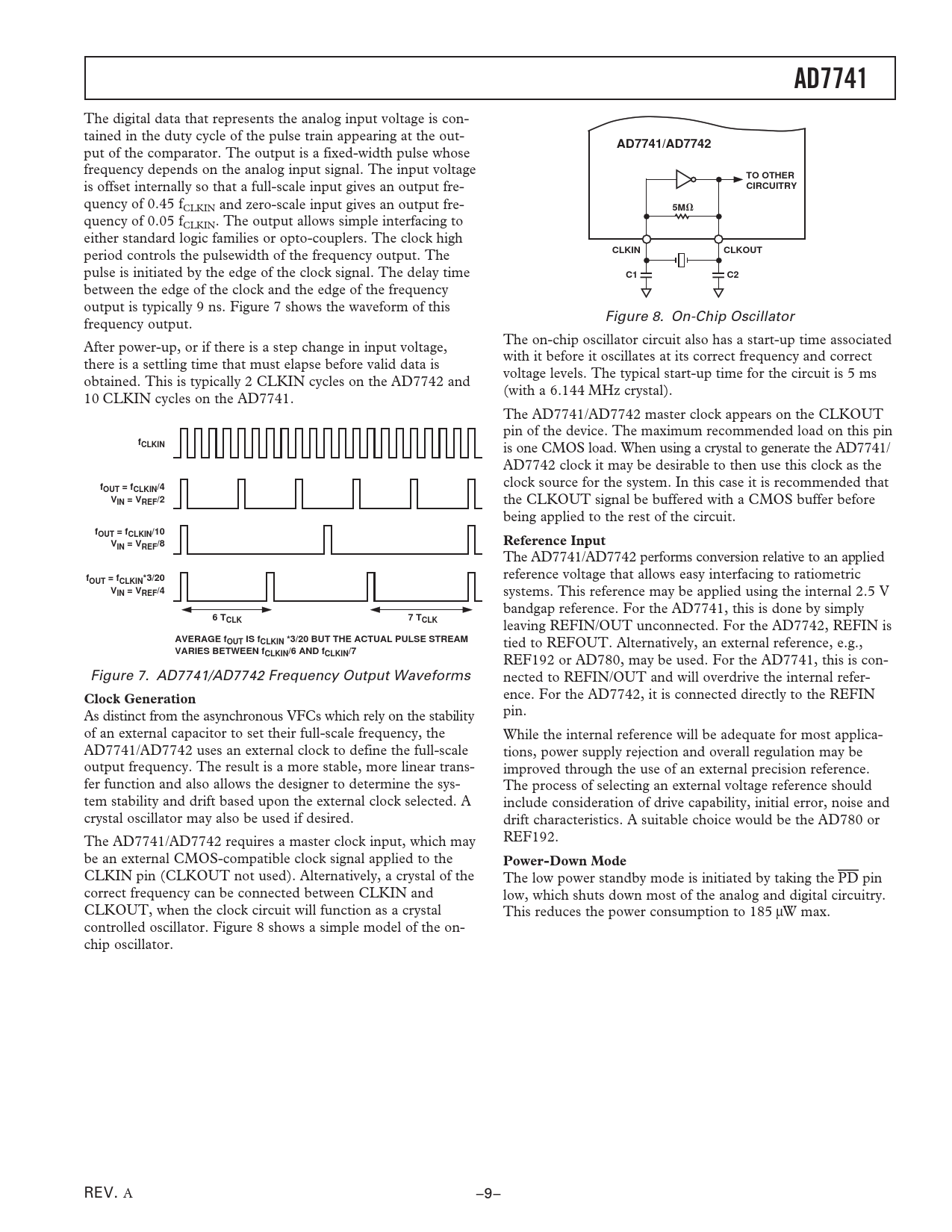 AD7741 AD7741/AD7742 TO OTHER CIRCUITRY CLKIN CLKOUT fCLKIN fOUT = fCLKIN/4 VIN = VREF/2 fOUT = fCLKIN/10 Reference Input