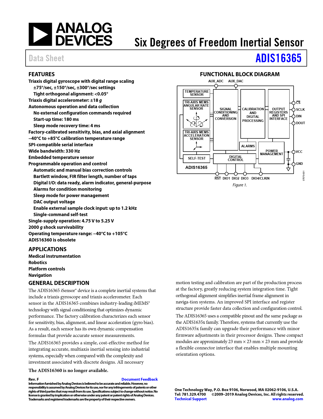 Datasheet ADIS16365 (Analog Devices)