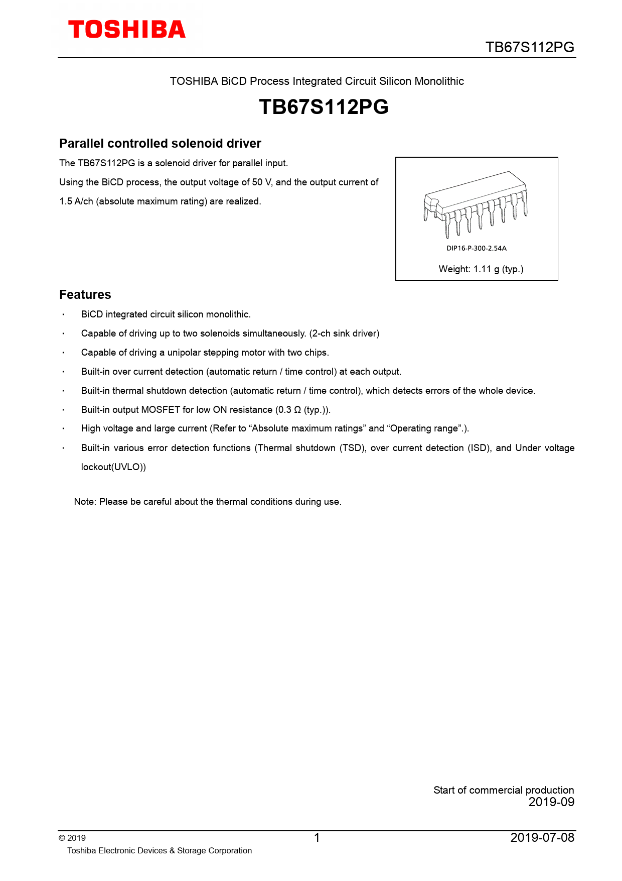| Seiten / Seite | 15 / 1 — TB67S112PG. Paral el controlled solenoid driver. Features |