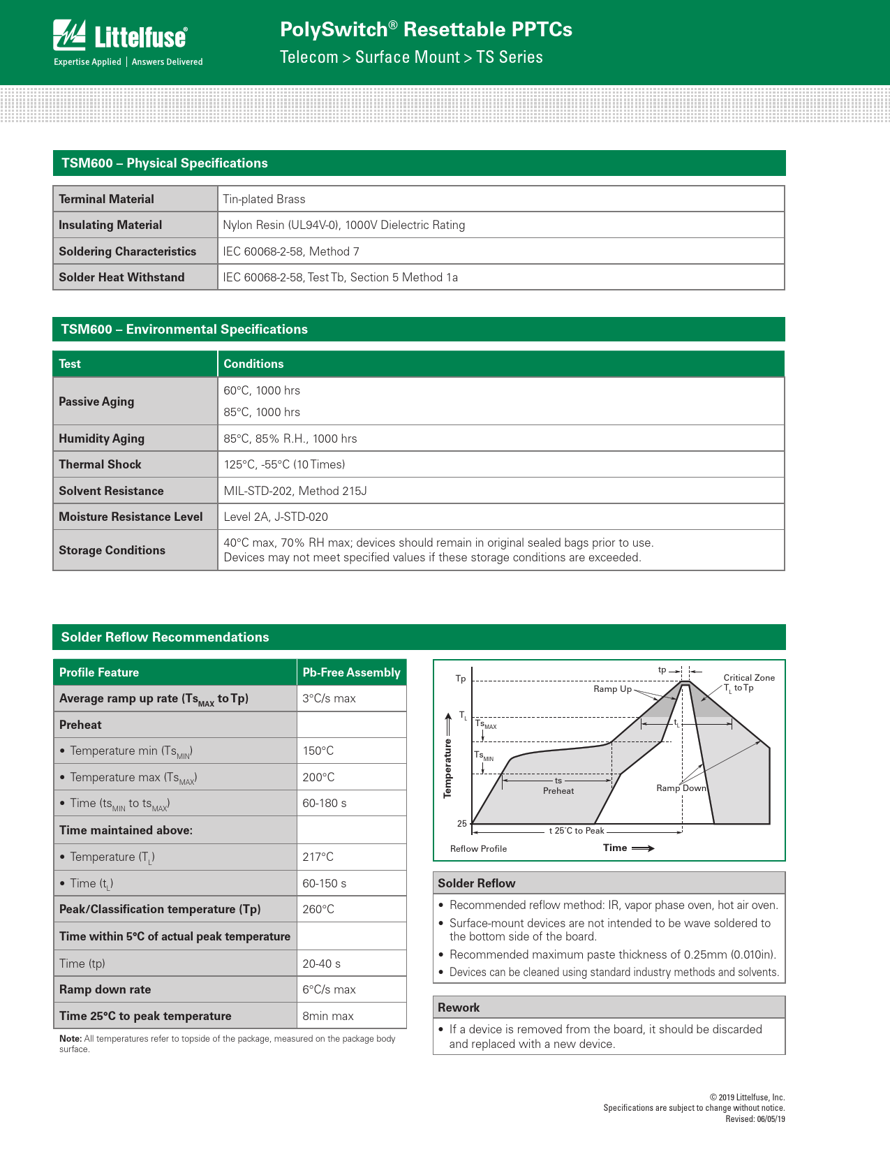 All temperatures refer to topside of the package, measured on the package body and replaced with a new device. surface. © 2019 Littelfuse, Inc. Specifications are subject to change without notice. Revised: 06/05/19