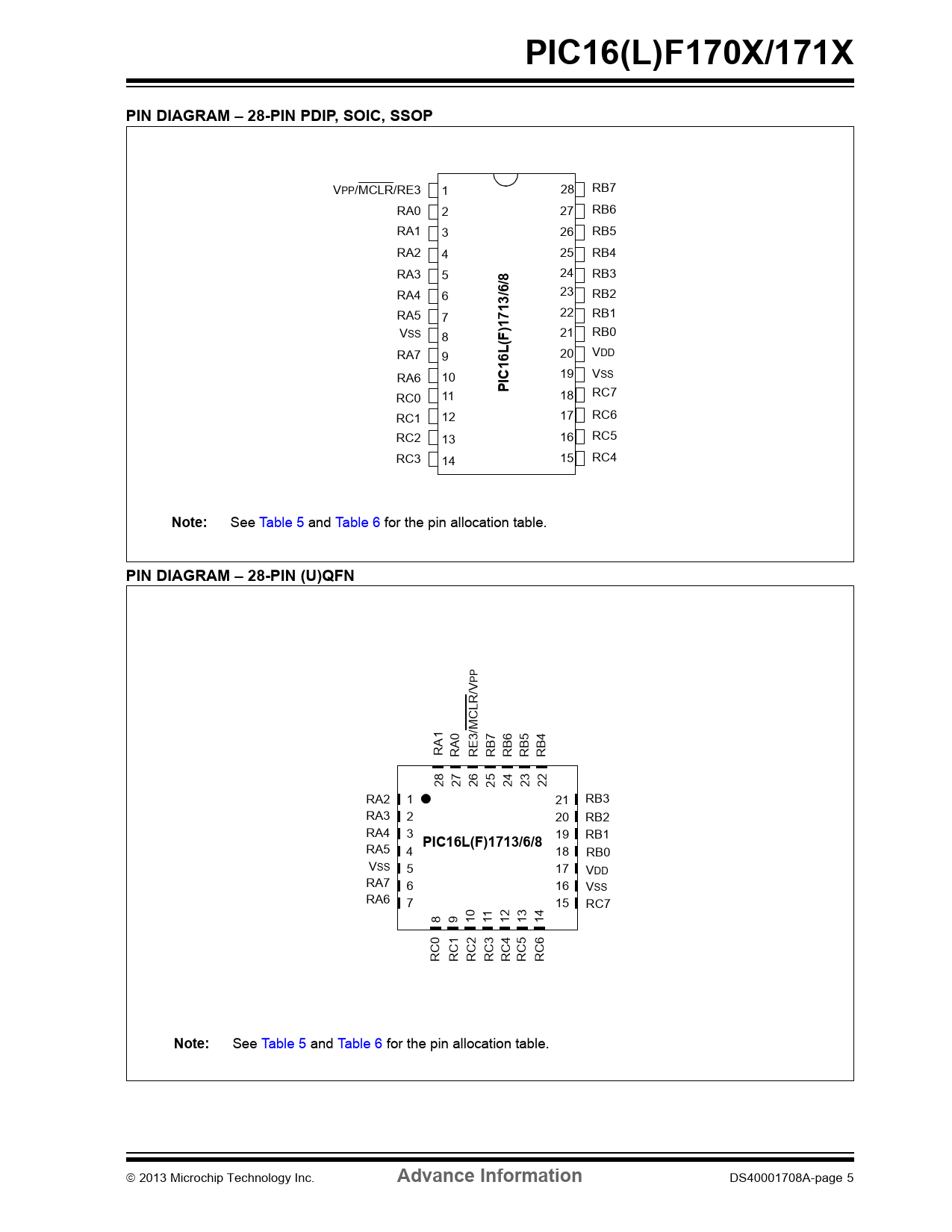 PIC16(L)F170X/171X. PIN DIAGRAM – 28-PIN PDIP, SOIC, SSOP. 3/6. (F)17. 16L. Note:. PIN DIAGRAM – 28-PIN (U)QFN. PIC16L(F)1713/6/8