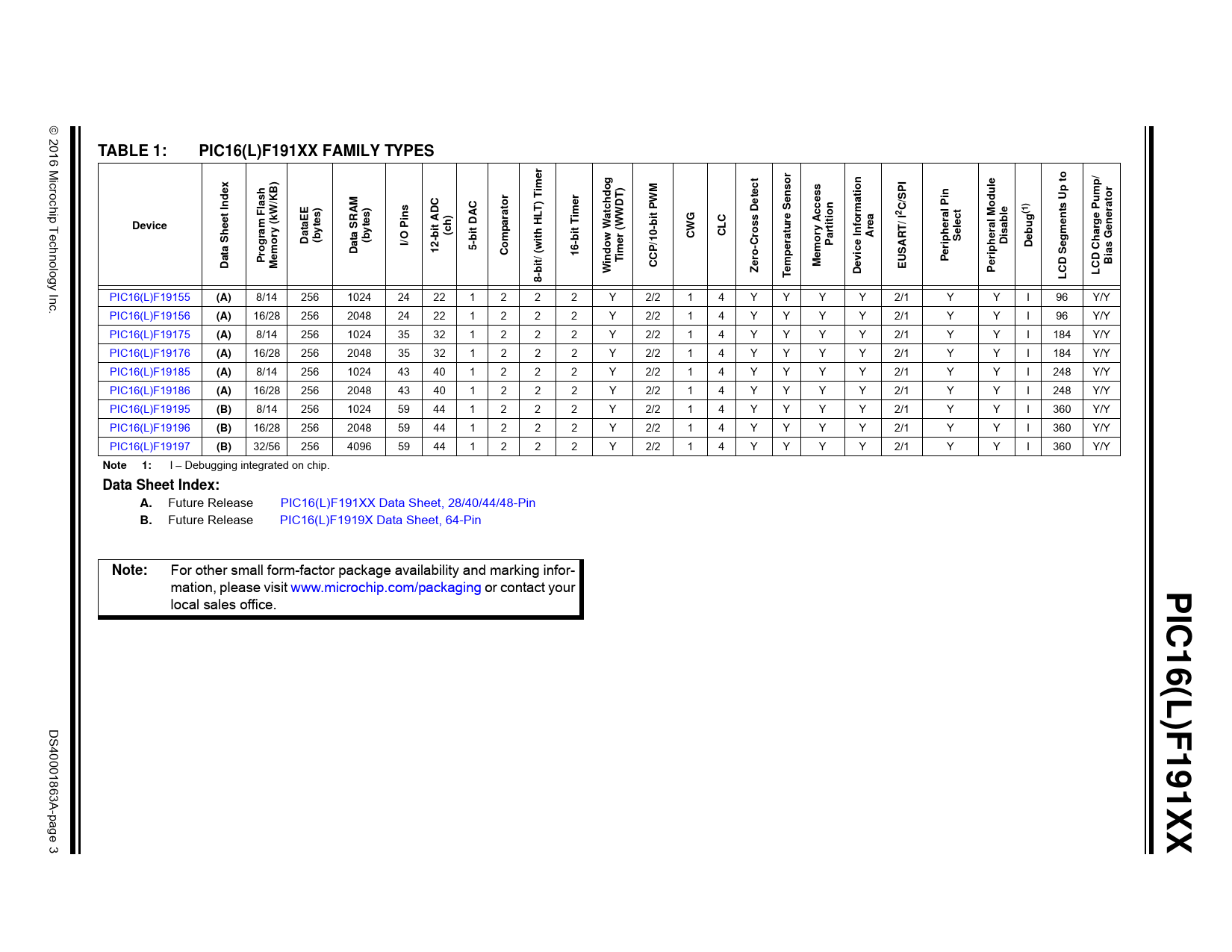 23 /3 — TABLE 1:. PIC16(L)F191XX FAMILY TYPES. ime. tion. SPI. hdo. t In. W/KB). …
