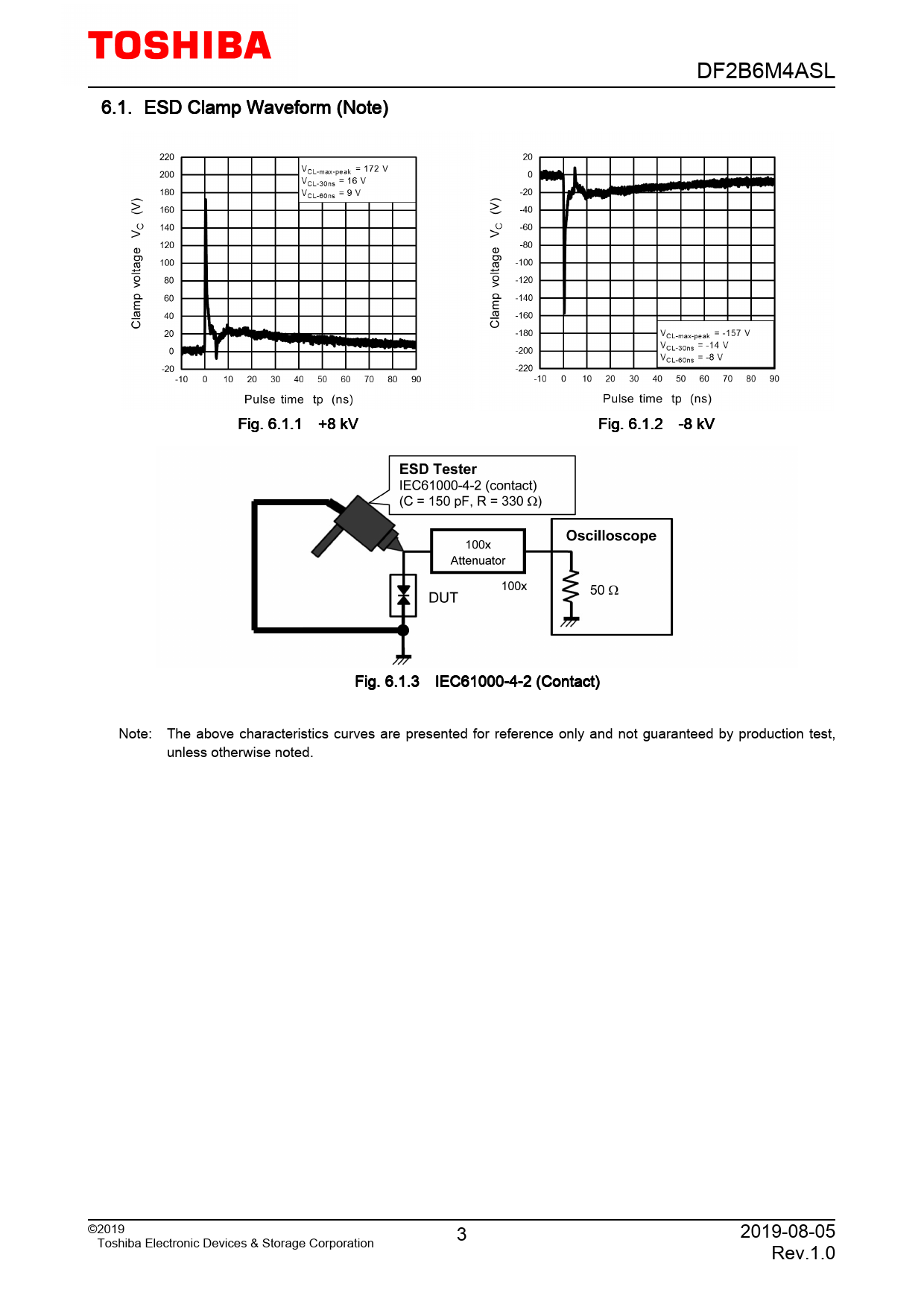 DF2B6M4ASL. 6.1. ESD. Clamp. Waveform. (Note). Fig. 6.1.1. +8. kV. Fig. 6.1.2. -8. kV. Fig. 6.1.3. IEC61000-4-2. (Contact). Note:. The. above. characteristics