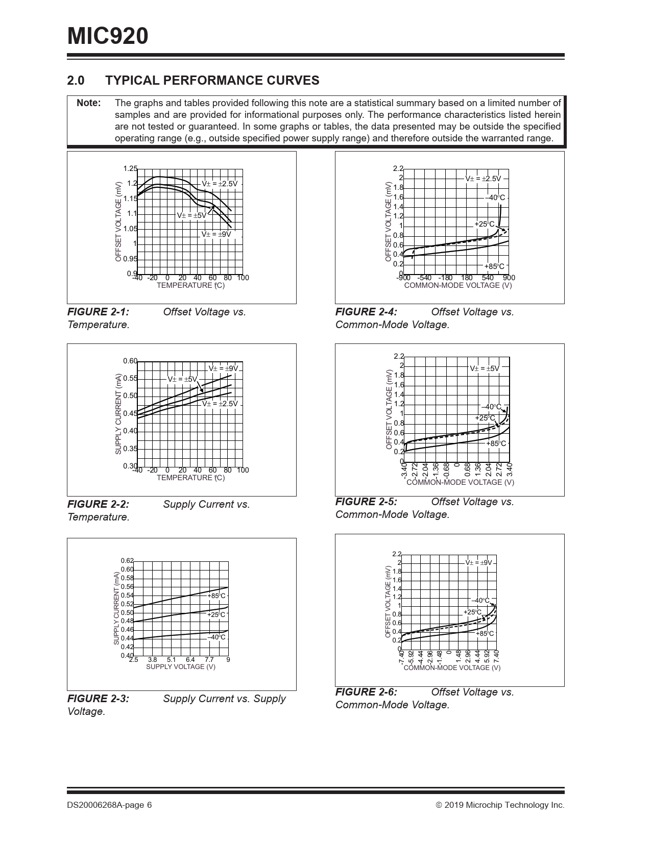 MIC920. 2.0. TYPICAL PERFORMANCE CURVES. Note:. FIGURE 2-1:. FIGURE 2-4:. FIGURE 2-2:. FIGURE 2-5:. FIGURE 2-6:. FIGURE 2-3: