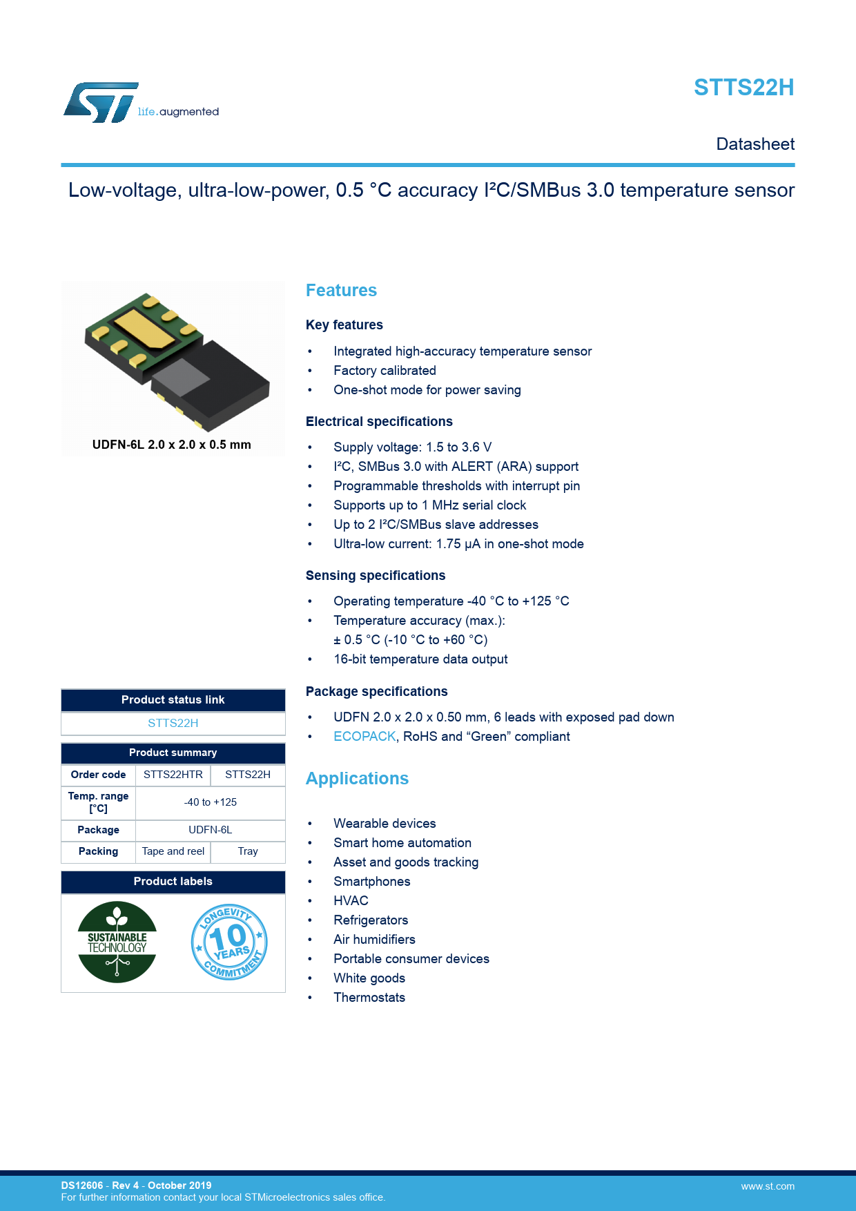 Datasheet STTS22H (STMicroelectronics)