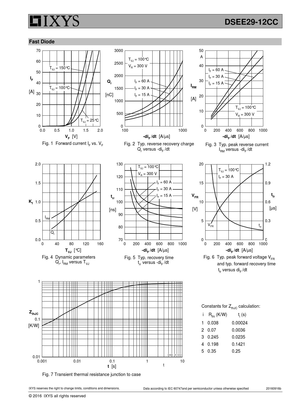 [s] Fig. 7 Transient thermal resistance junction to case IXYS reserves the right to change limits, conditions and dimensions. Data according to IEC 60747and per semiconductor unless otherwise specified 20160916b © 2016 IXYS all rights reserved