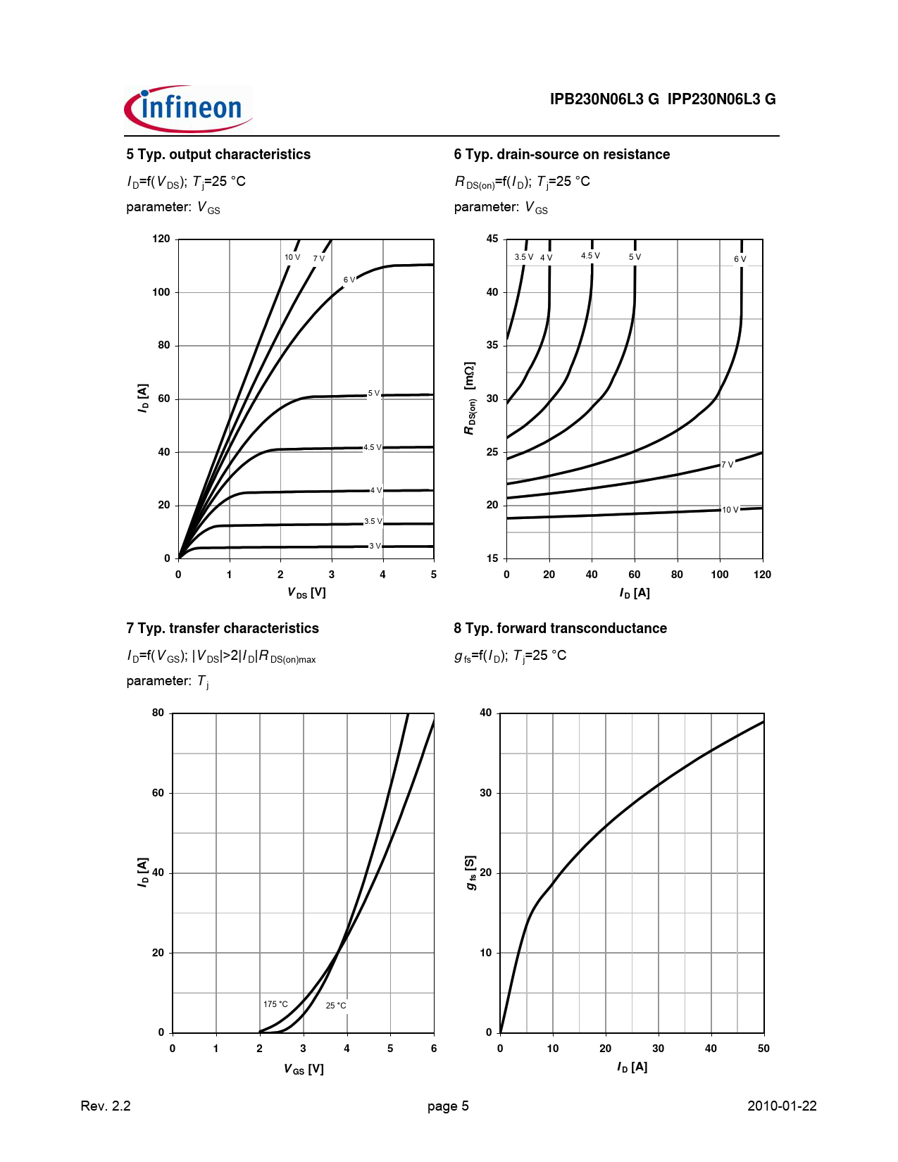 IPB230N06L3 G IPP230N06L3 G 5 Typ output characteristics 6 Typ drain-source on resistance 120 100 [A] (on) DS [V] D [A]