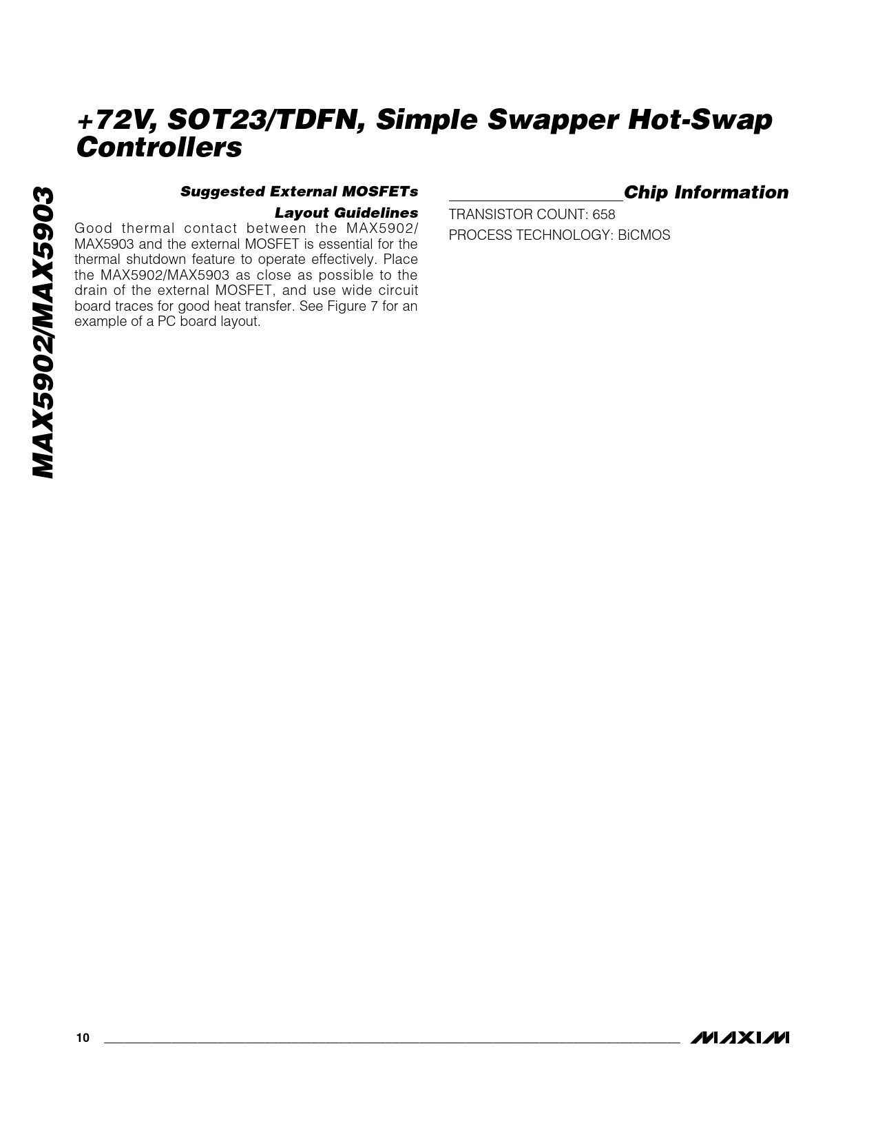 +72V, SOT23/TDFN, Simple Swapper Hot-Swap Controllers. Suggested External MOSFETs. Chip Information. Layout Guidelines