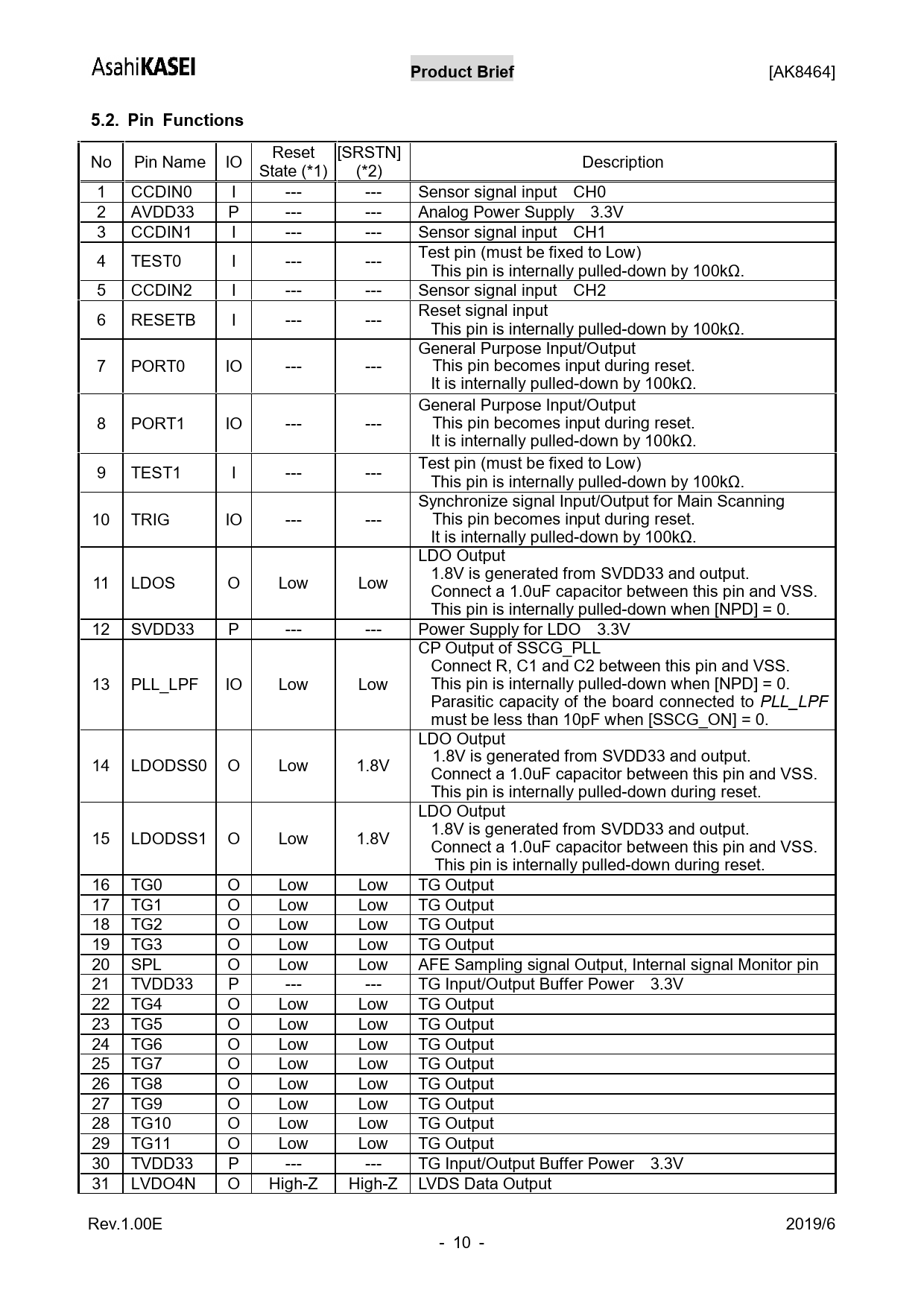 Seiten / Seite13 / 10 — Product Brief. 5.2. Pin Functions