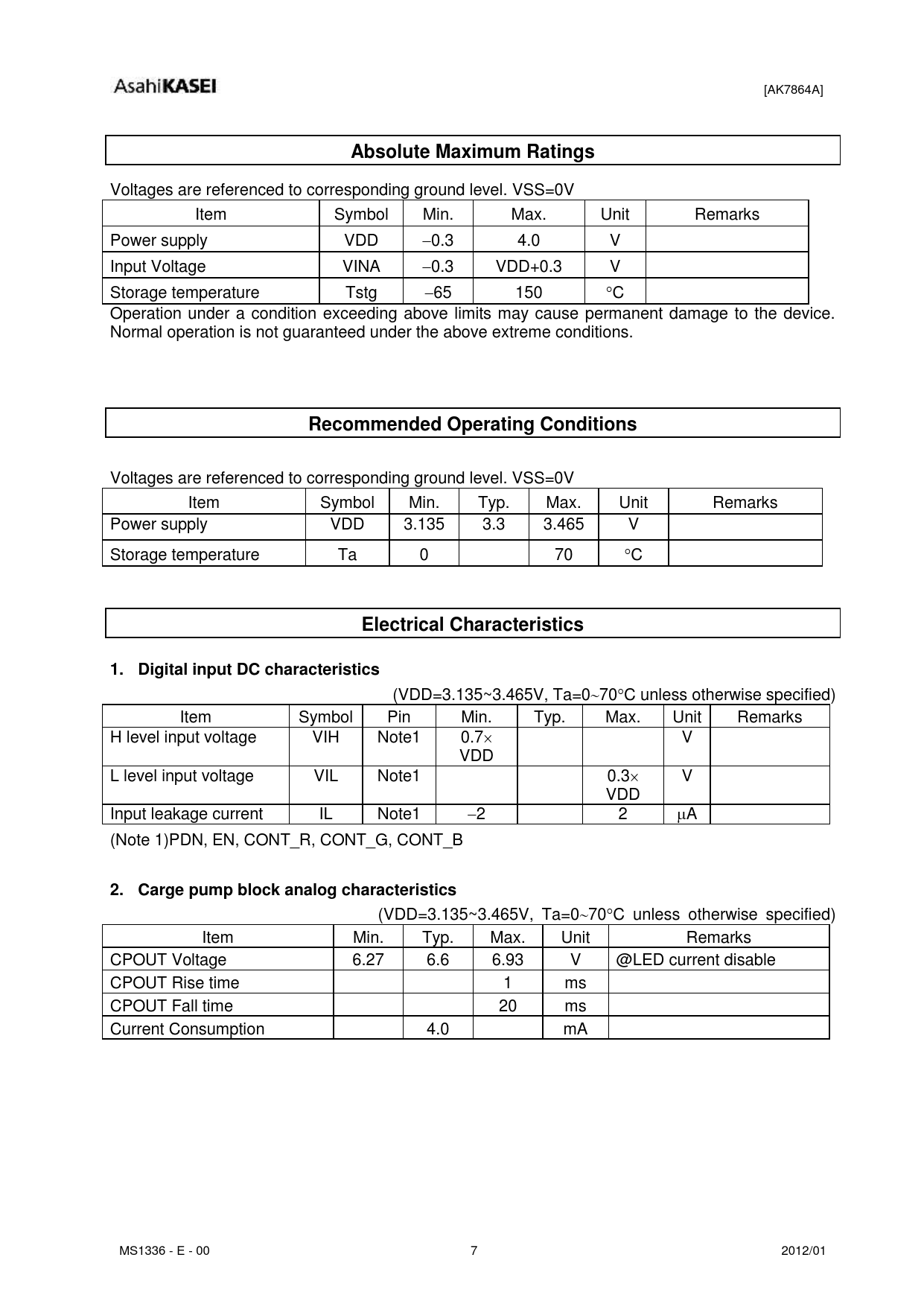 Datasheet AK7864A (Asahi Kasei Microdevices) - 7