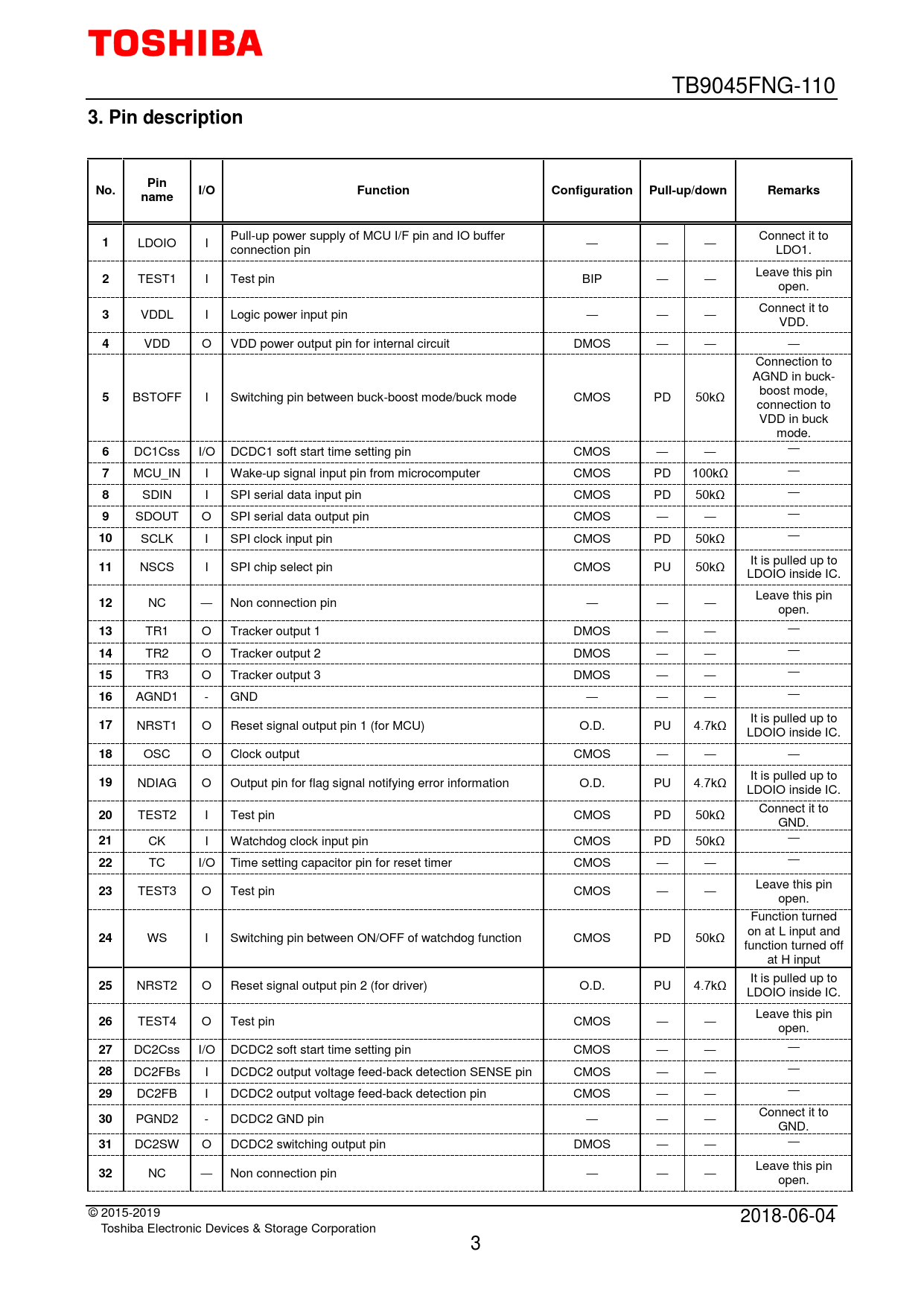 NC ― Non connection pin ― ― ― open. © 2015-2019 2018-06-04 Toshiba Electronic Devices & Storage Corporation 3