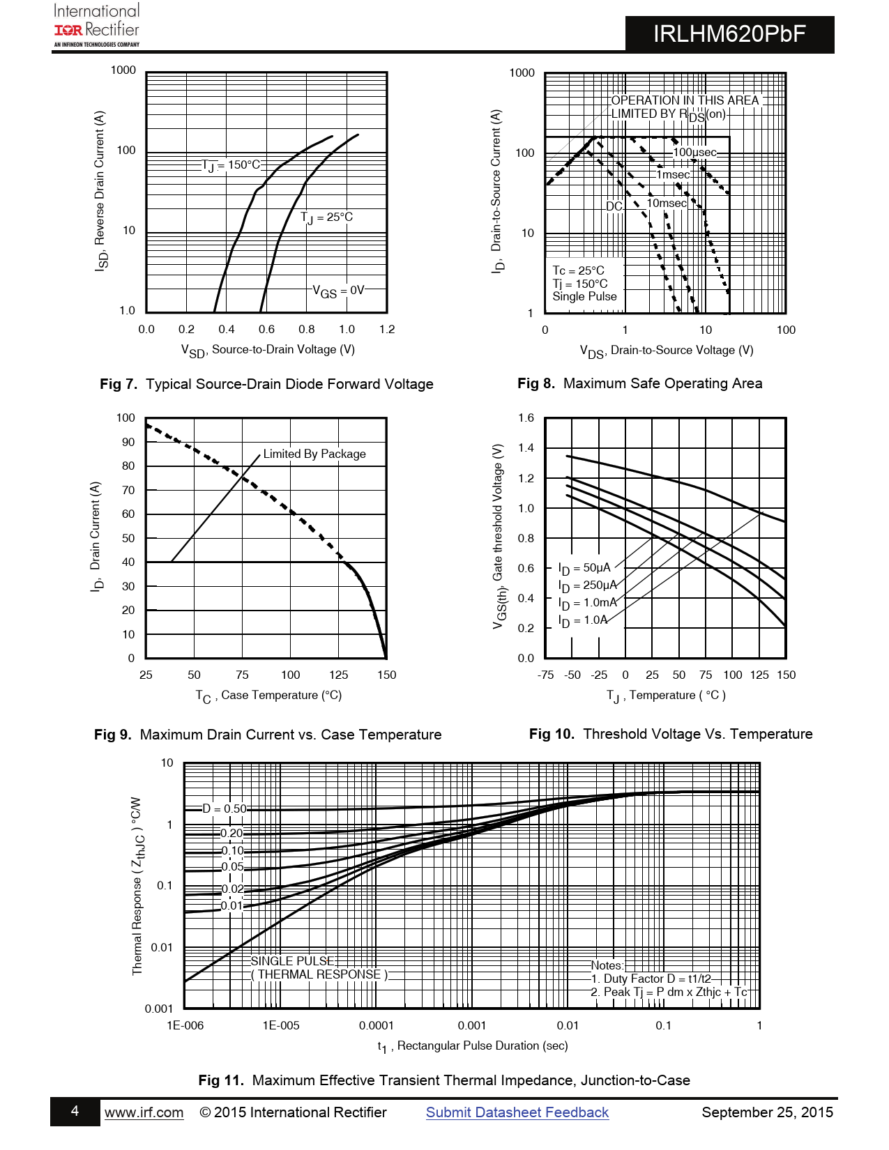 Maximum Effective Transient Thermal Impedance, Junction-to-Case 4 www.irf.com © 2015 International Rectifier Submit Datasheet Feedback September 25, 2015